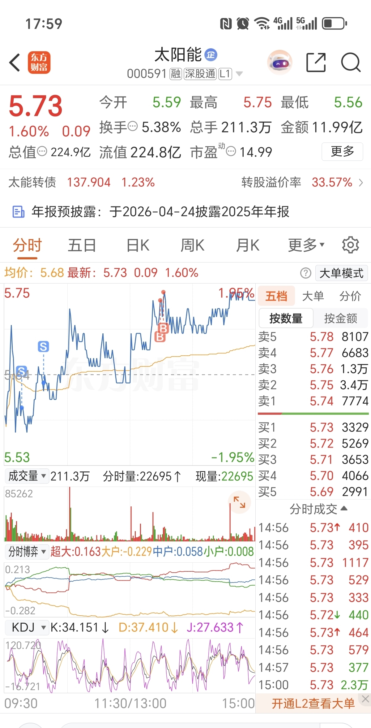$太阳能(SZ000591)$ 你们都别争跌与涨了,我才是最傻的那个,永远都是反向做t,成本越做越高!!!