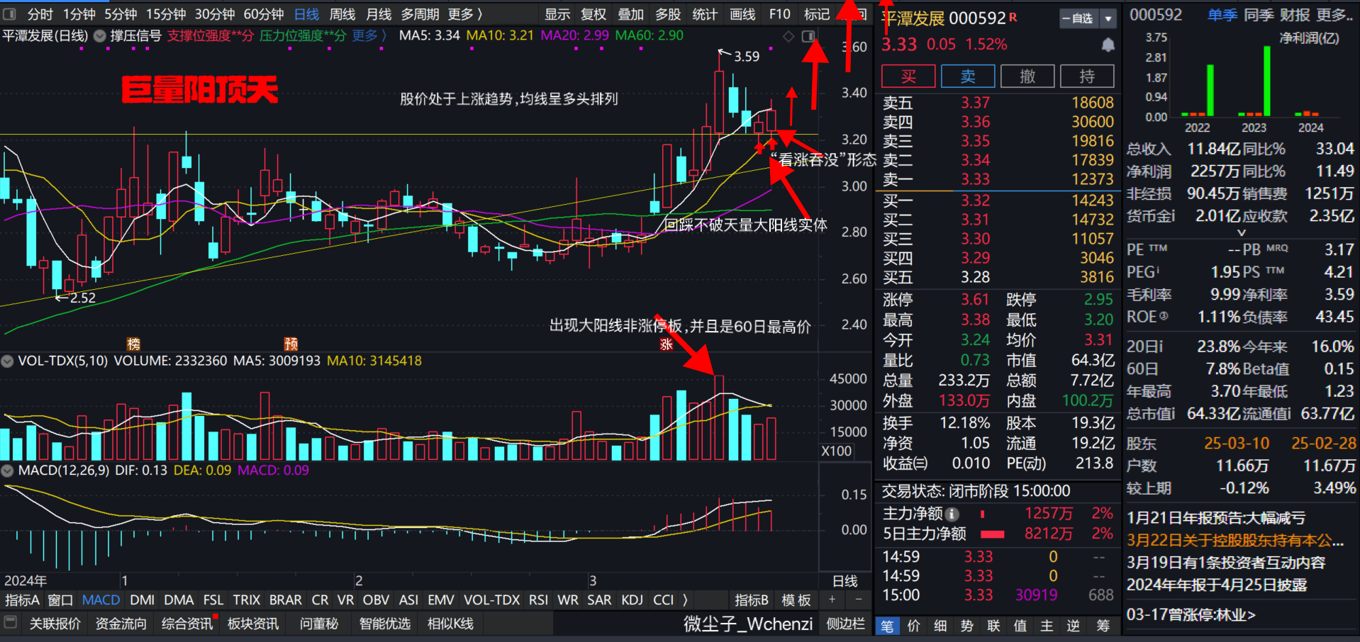 根据周末复盘,目前走势已经形成“准暴涨趋势”,首先昨日的阳包阴,吞掉19日的阴线实体,形成“看涨吞没”形态,同时20/21日两日回踩均不破17日大阳线的实体,且这根大阳线为60日最高价并放出天量,在目前各均线呈多头排列上涨趋势下,出现这些迹象,完全符合“巨量阳顶天”形态,预示着后面即将开启一波“波澜壮阔”的行情,不要纠结于当下的结果,视野要放长远,格局要打开。