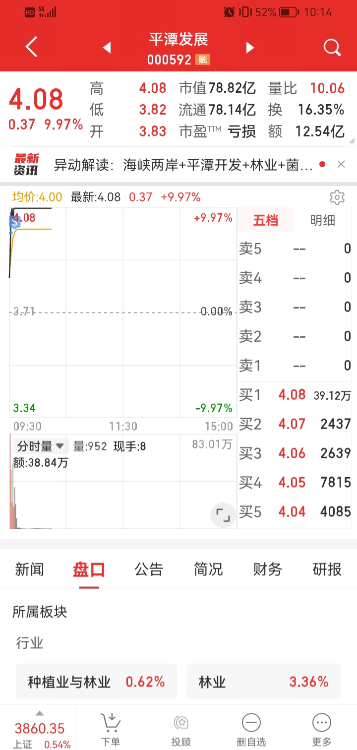 $平潭发展(SZ000592)$ 拿了这么久,开盘前随手挂个单忘了撤单了,自动成交了剩下的下午不开板不卖了