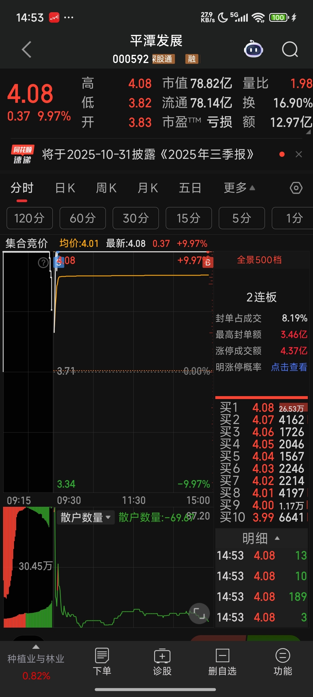 $平潭发展(SZ000592)$ 买卖错又排板买回来了,收盘刚刚好成交,佛山佬砸不死都可以高看一眼