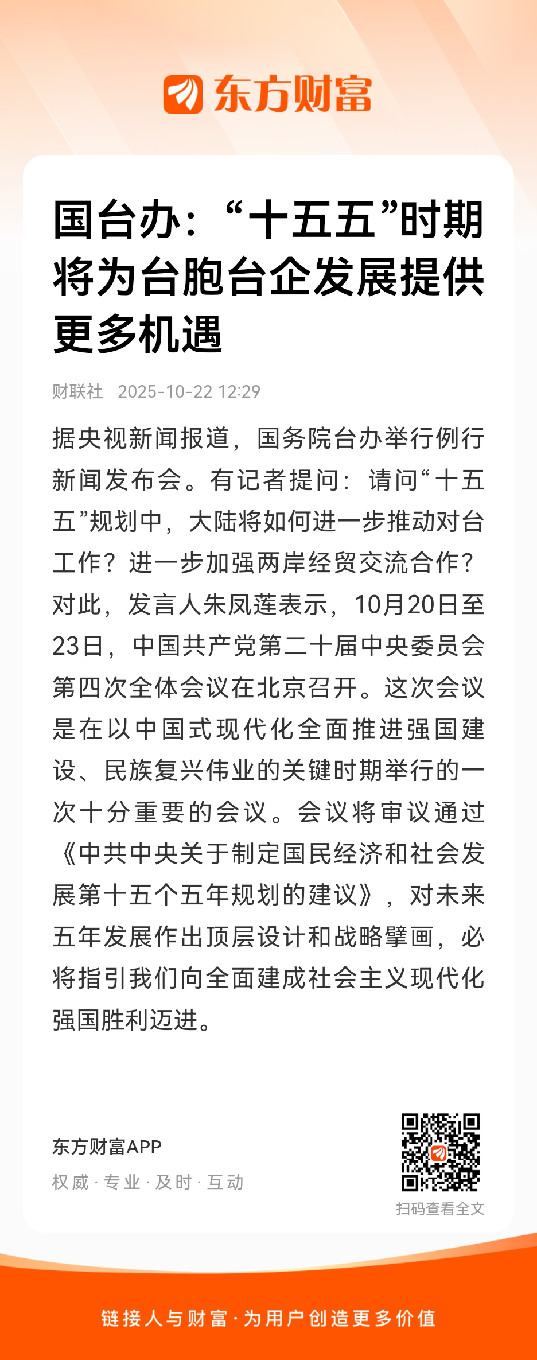 国台办:“十五五”时期将为台胞台企发展提供更多机遇