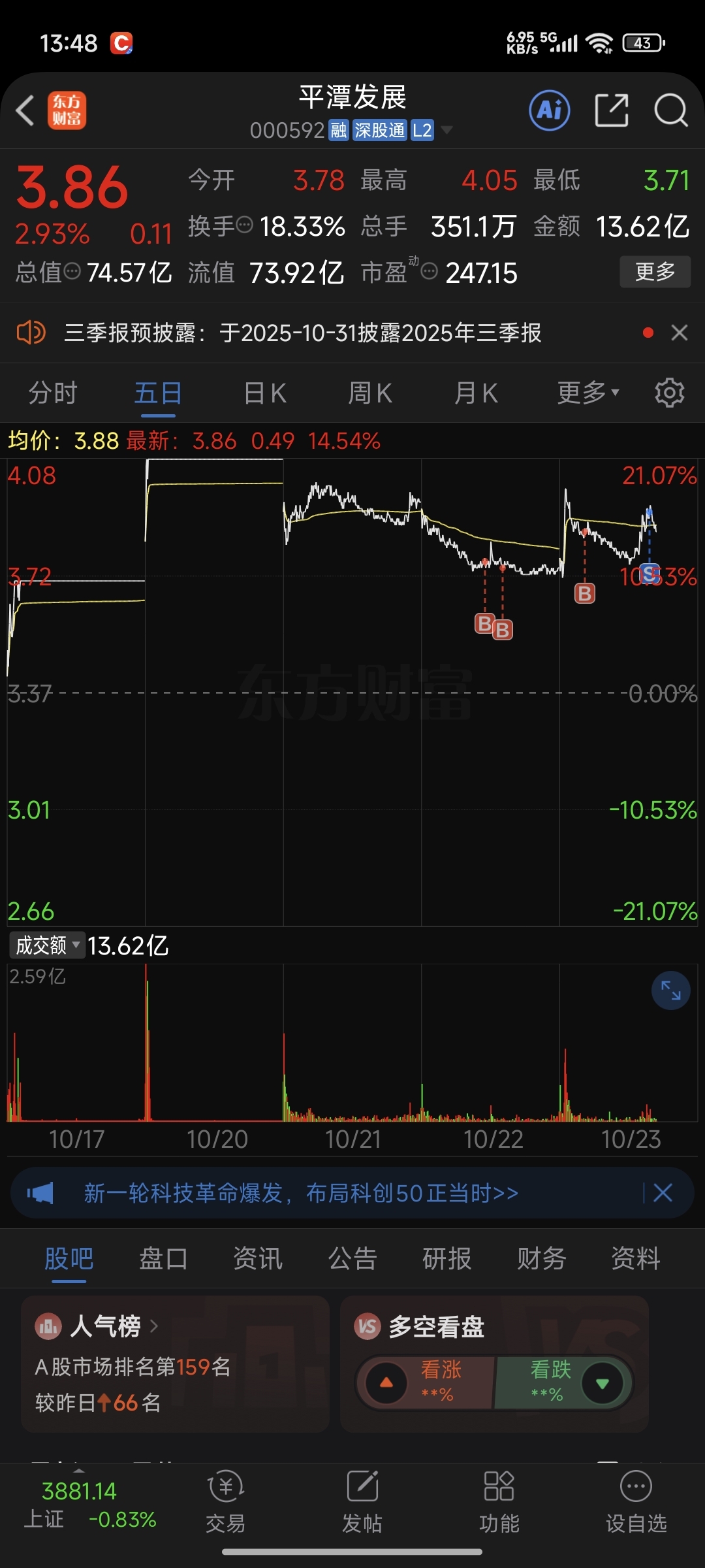 $平潭发展(SZ000592)$ 有点拉胯,但是作为高手的我,依然可以盈利