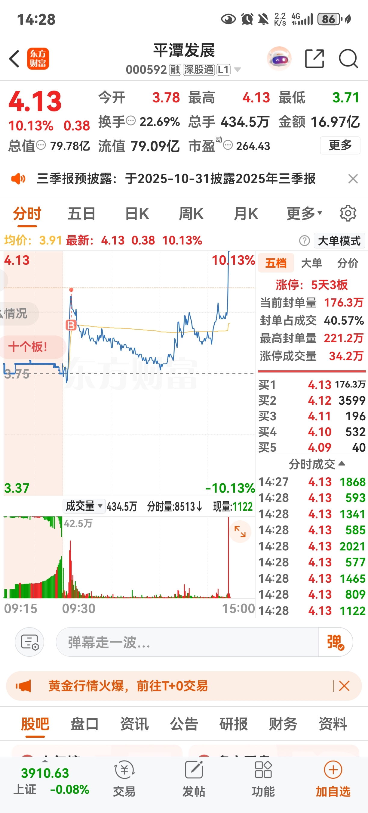 昨天进的海鸥,今天直接利润没了,早上伤心追高平潭,今天心如死灰了,没想到最后给我