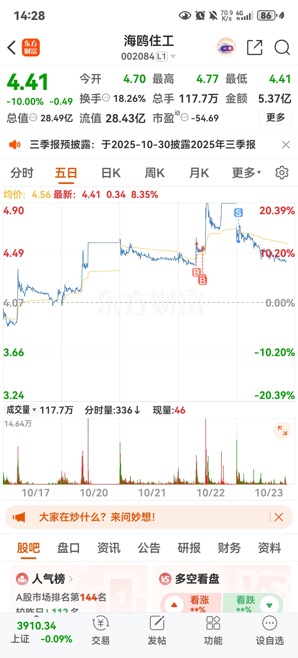 温馨提示: 1.根据《证券法》规定,禁止编造、传播虚假信息或者误导性信息,扰乱证券市场;2.用户在本社区发表的所有资料、言论等仅代表个人观点,与本网站立场无关,不对您构成任何投资建议。用户应基于自己的独立判断,自行决定证券投资并承担相应风险。《东方财富社区管理规定》
