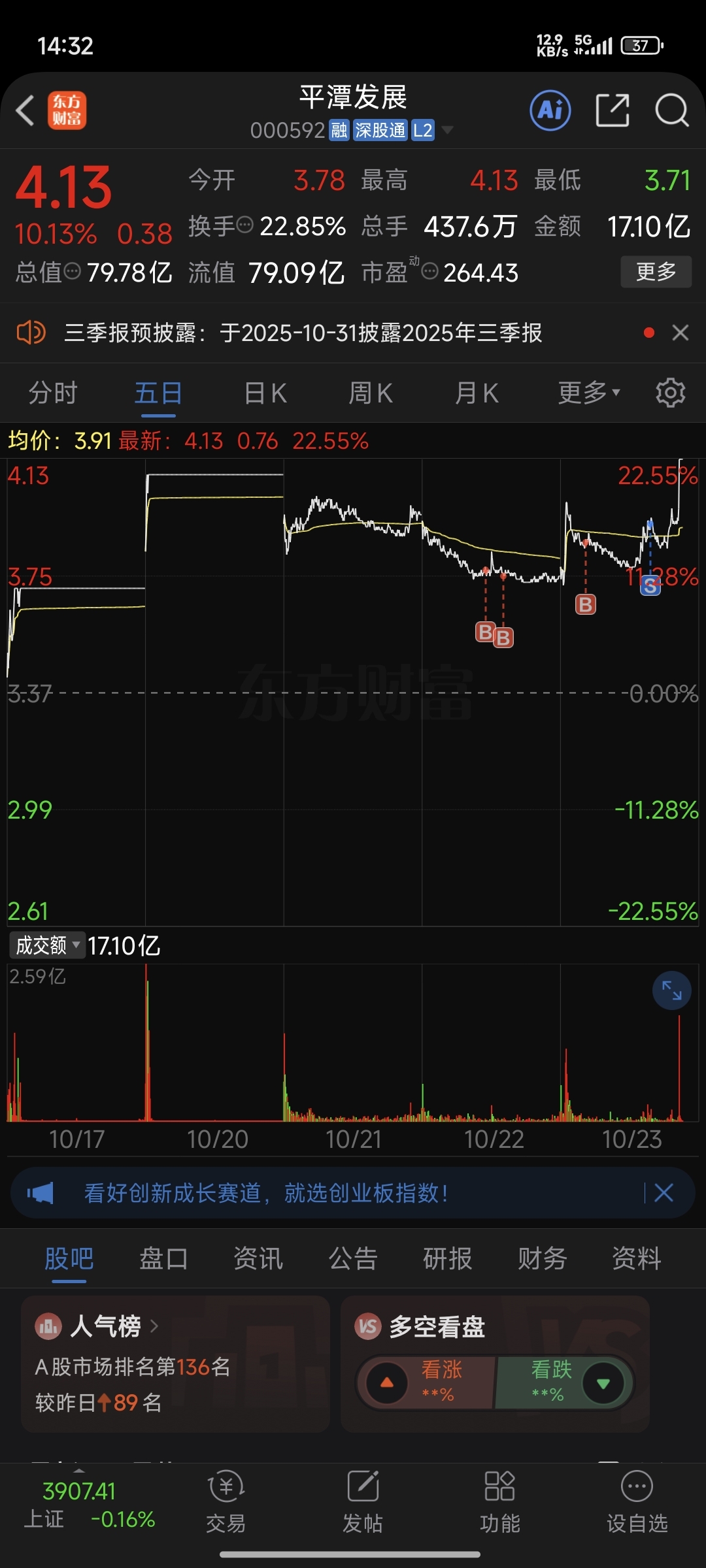 $平潭发展(SZ000592)$ 该死的谨慎被洗出去一部分筹码喽,哈哈哈