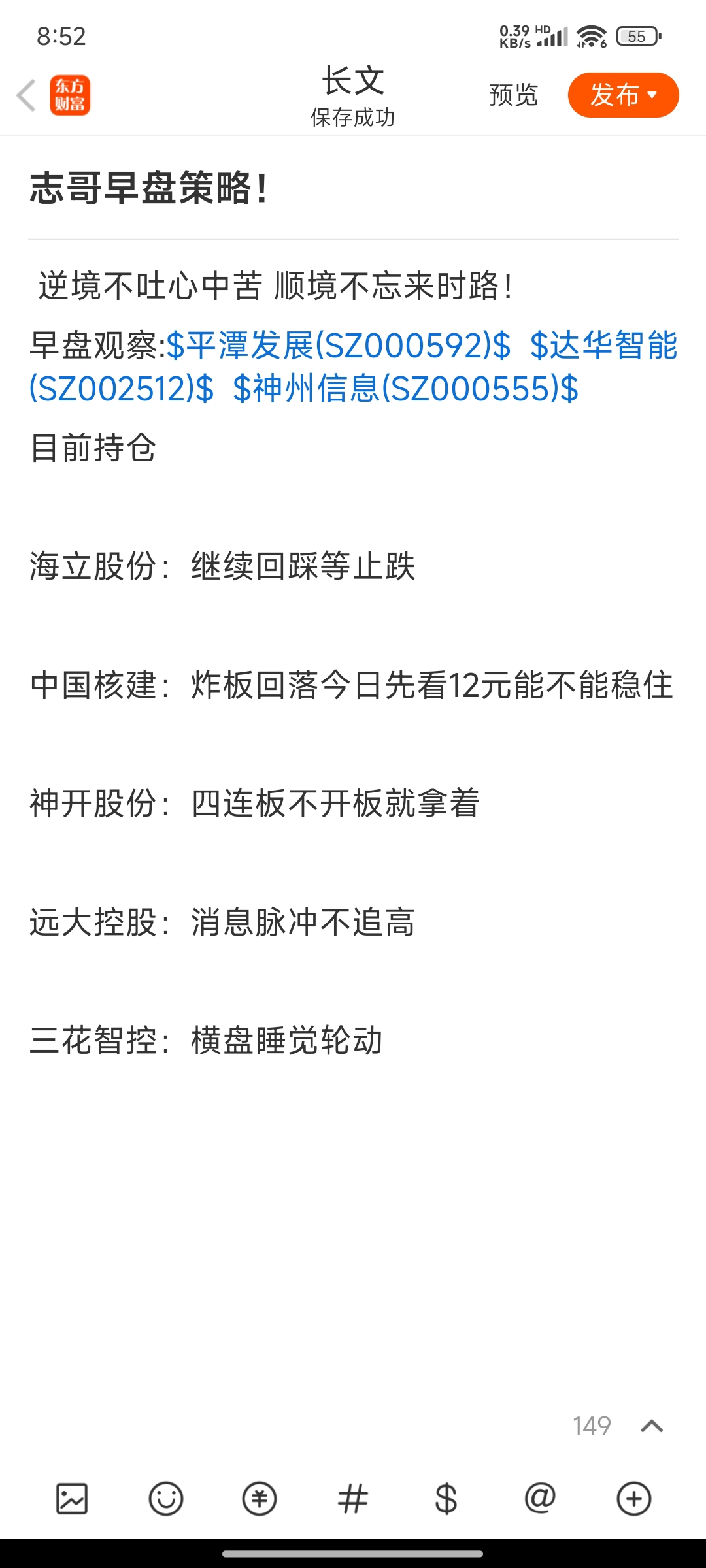 温馨提示: 1.根据《证券法》规定,禁止编造、传播虚假信息或者误导性信息,扰乱证券市场;2.用户在本社区发表的所有资料、言论等仅代表个人观点,与本网站立场无关,不对您构成任何投资建议。用户应基于自己的独立判断,自行决定证券投资并承担相应风险。《东方财富社区管理规定》