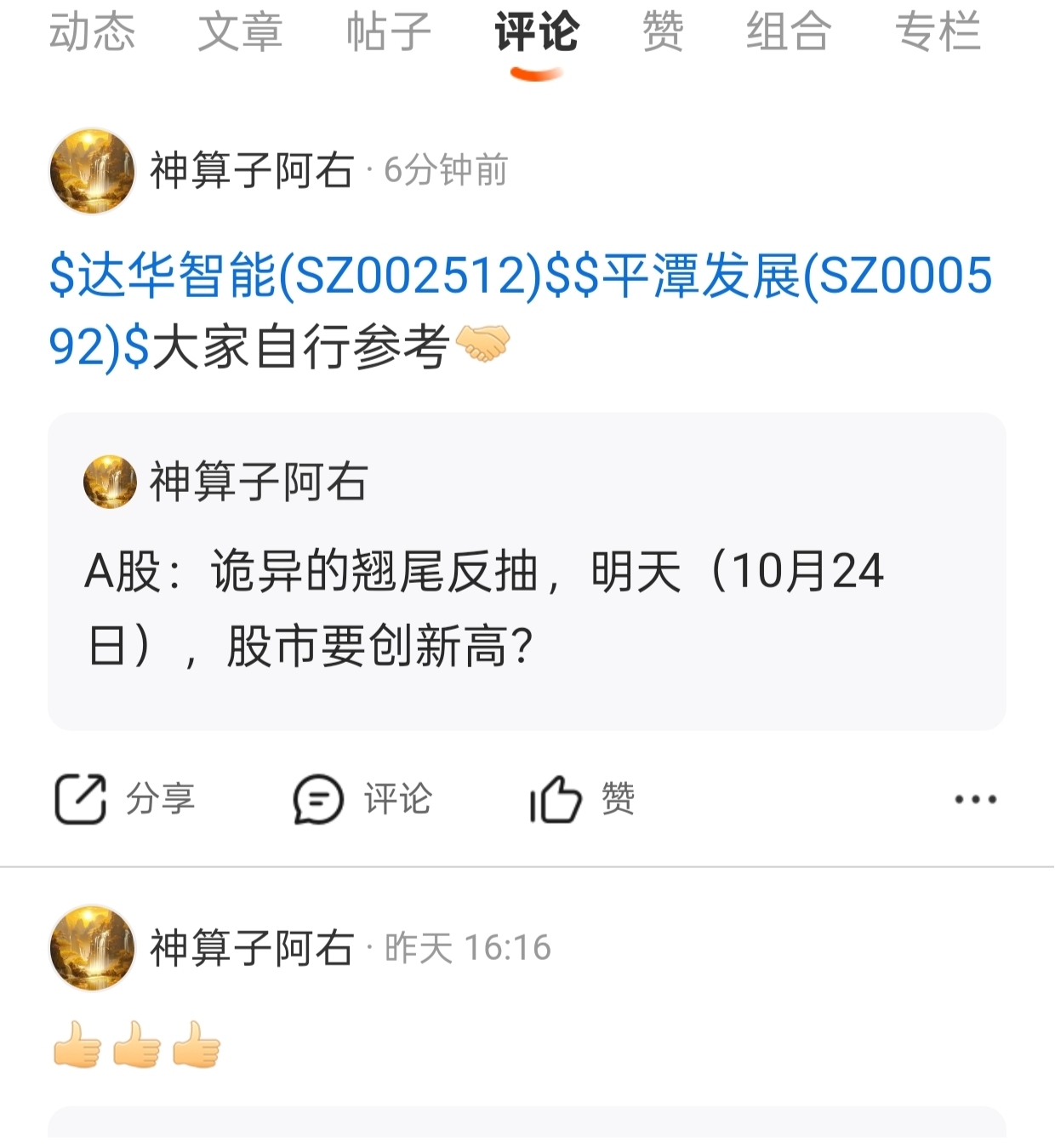温馨提示: 1.根据《证券法》规定,禁止编造、传播虚假信息或者误导性信息,扰乱证券市场;2.用户在本社区发表的所有资料、言论等仅代表个人观点,与本网站立场无关,不对您构成任何投资建议。用户应基于自己的独立判断,自行决定证券投资并承担相应风险。《东方财富社区管理规定》