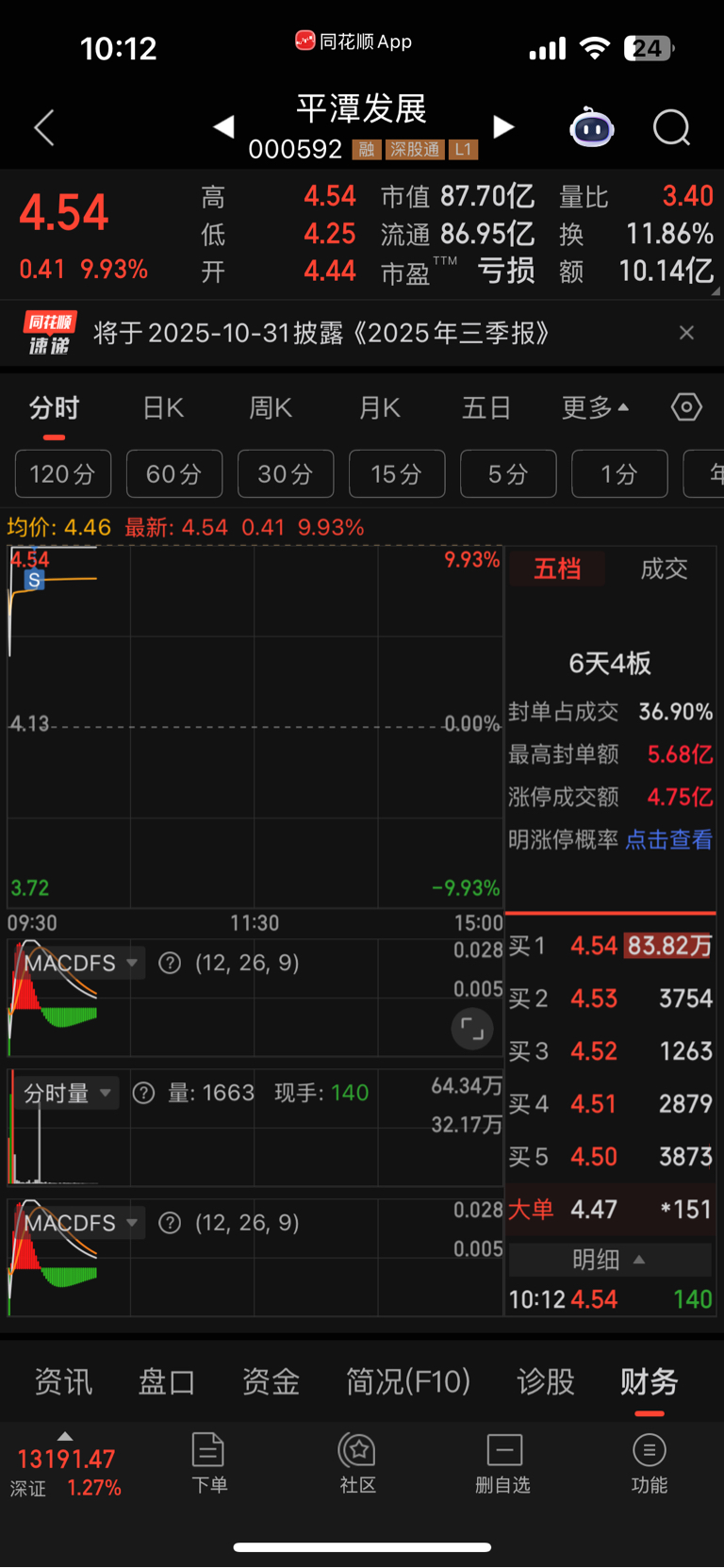 $平潭发展(SZ000592)$ 开板的时候吓老子出来了,主力好阴险