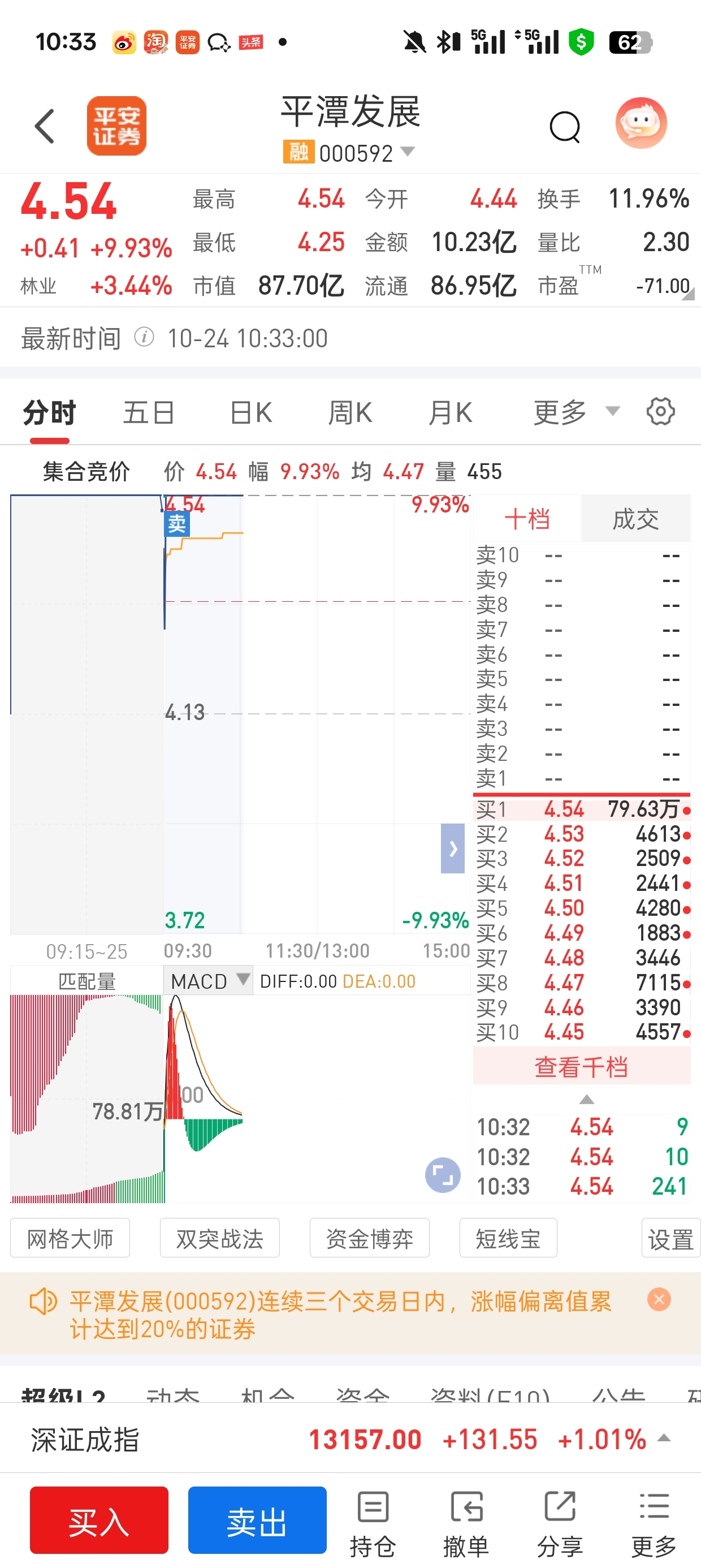 $平潭发展(SZ000592)$ 虽然我在早盘卖了一大半,但是该说不说这股接下来确实很强,今天开板的概率极小,接下来大概率连板翻倍行情,没头脑和不高兴安安静静看着就好!