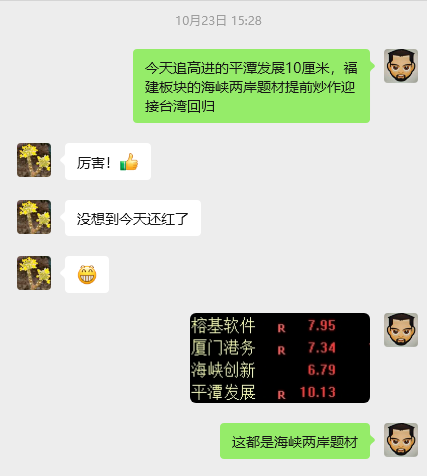 福建板块炒作的时间将近两个月了,从福建海峡两岸题材然后发散到商业航天、商业航天还没退潮完毕,又来了个大消费,连板最高标也就止步于7板吧,再加上现在动不动就监管,资金也不敢硬顶,所以造成现在的整个板块情绪是有宽度而高度又上不去,龙头平潭发展里面的资金因为惜售又不愿交出筹码,大资金如果硬拉又面临监管调查,这是否是大资金因为无奈而被迫做出的选择。不管怎样,一切都源于筹码的交换。