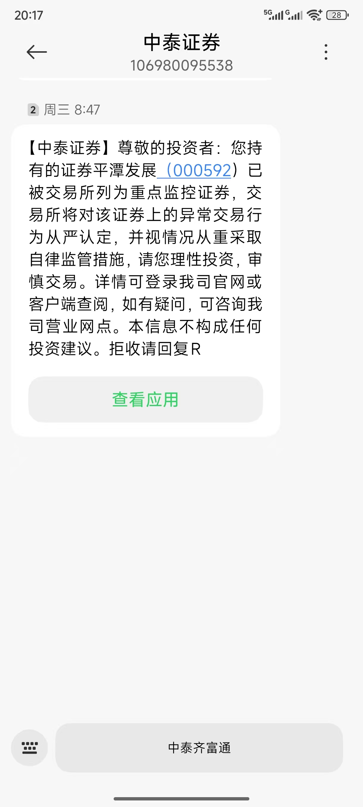 个人认为虽然平潭发展目前处在高位,但周五尾盘的惊魂瀑布杀并非主力出货,原因有以下几点:一,日线级别并未放出天量;二,这种一路充分换手上来的大盘股,它的资金构成非常复杂,筹码并非单个主力能主导的,这里面的资金有主力、有游资、有量化,还有大量散户,这种尾盘跳水瀑布杀非但不能出货,只会引起恐慌,引起散户、游资大量出逃,不利于大资金出逃,大资金真想出货只能是在连拉大阳的上涨加速阶段完成(正所谓龙头死于加速),所以只能理解为某个大资金提前抢跑,进而引发散户跟风抛售,然后触发了量化规则,造成短短2分钟13厘米的瀑布杀,三,即使周五惊魂瀑布杀,目前还未跌破5日线和上升趋势线,四,截止到周六的目前并未有利空消息。现在小作为满天飞,持股者情绪混乱而混沌,那么,下周初应该在目前股价位置震荡,经历震荡调整后情绪会慢慢的修复,在月底的监管期前不可能大涨,可能会以小阴小阳慢慢攀升的方式展开。附:12月17日8点47分收到的重点监管通知。