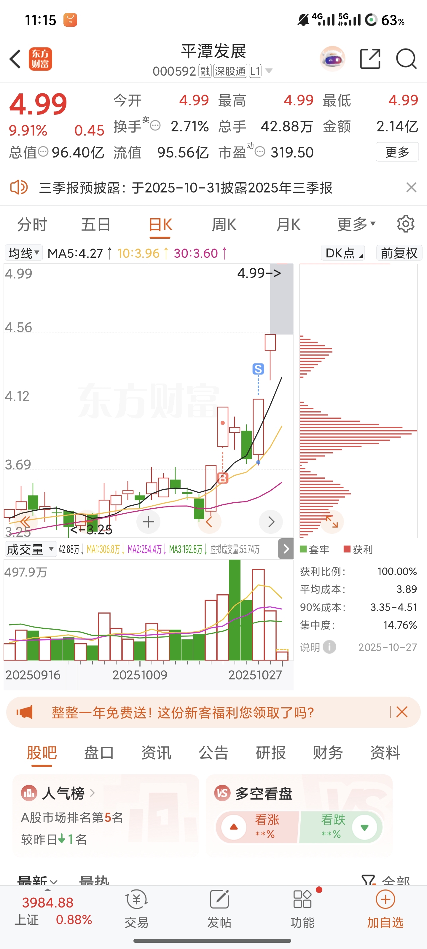 $平潭发展(SZ000592)$ 把我洗走了。