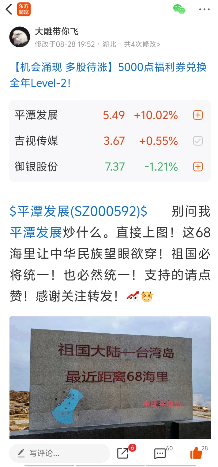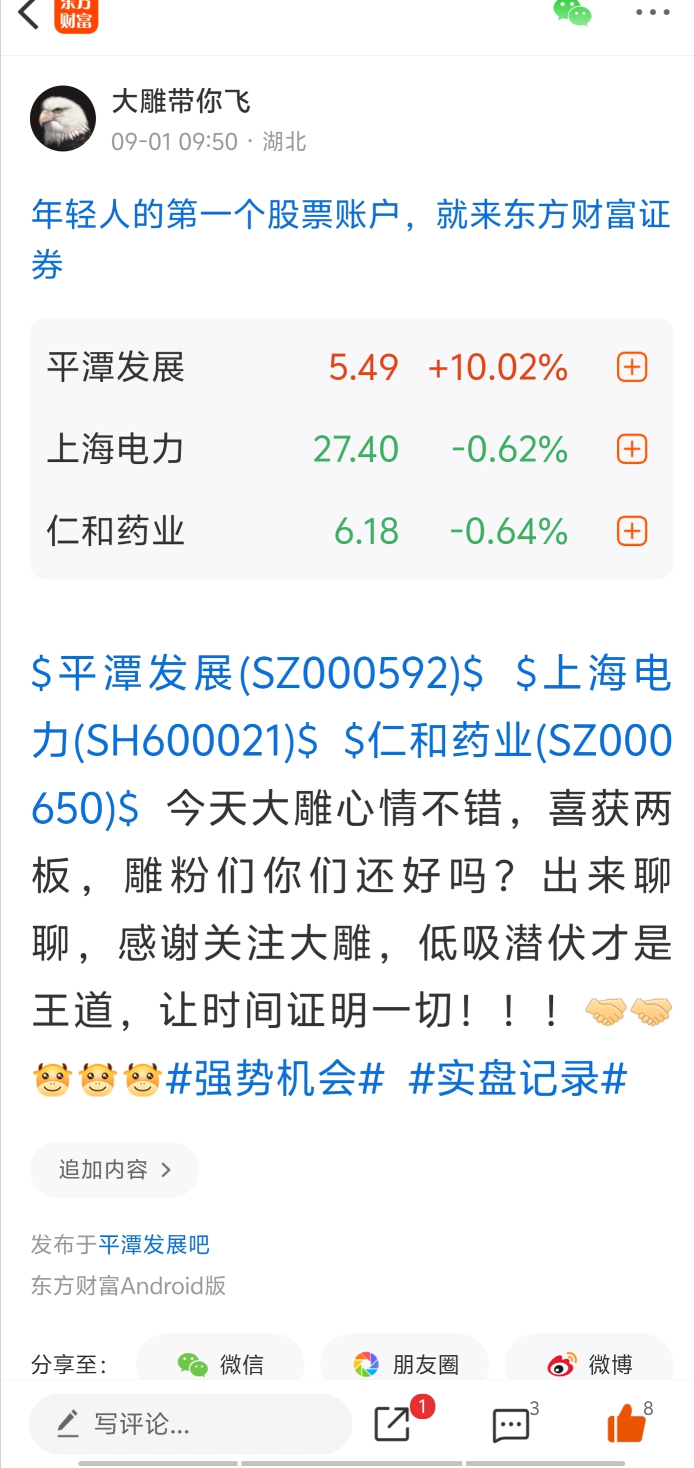 $平潭发展(SZ000592)$ 恭喜潜伏低吸到现在还没跑的雕粉!记住我说的,追涨杀跌亏损无边的,让我们用时间证明一切!