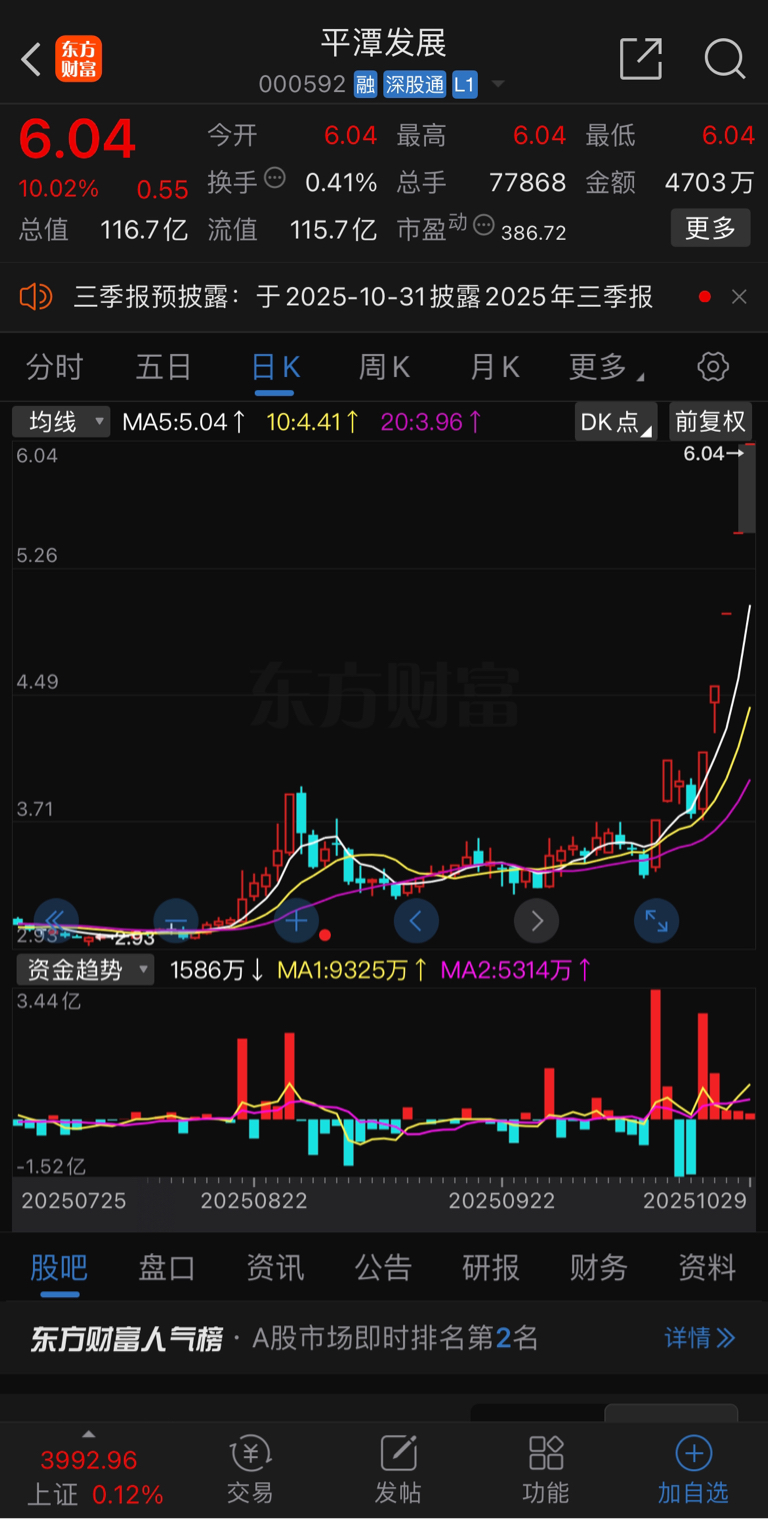 看看我10/24号共享的平潭发展 000592数板数到手软,今天继续一字板,有没有把握住机会的朋友,恭喜了