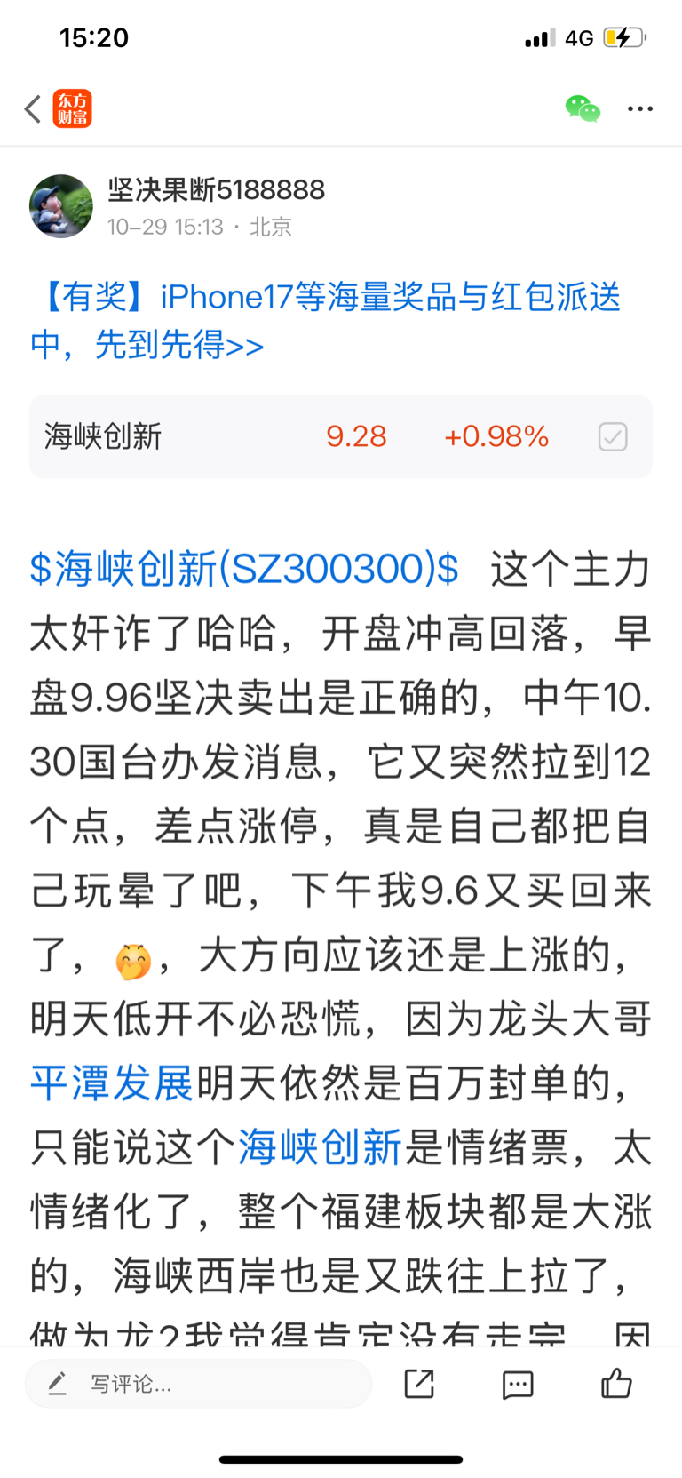 平潭发展明天肯定还是百万封单,平潭不跌,我海峡创新就绝对一直不卖……平潭就两家上