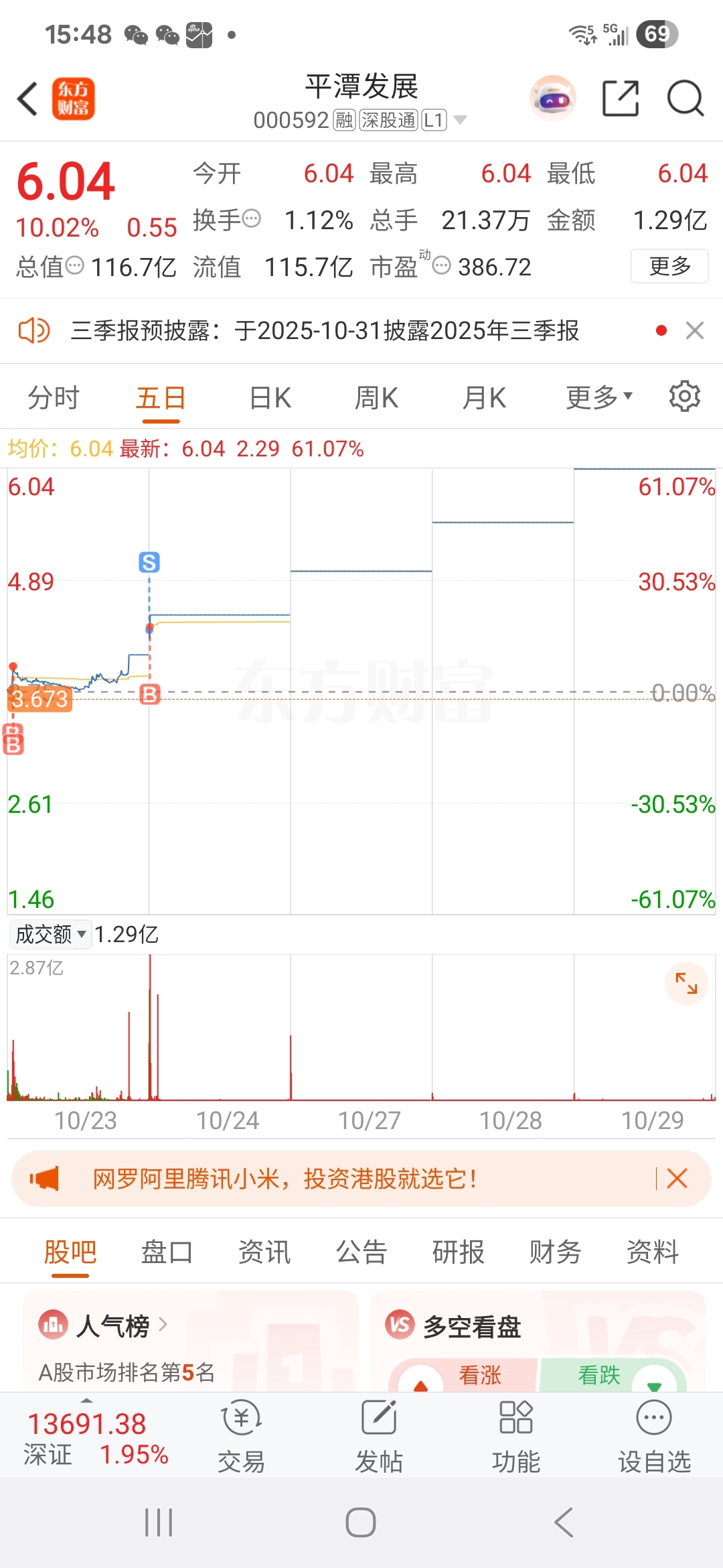 $平潭发展(SZ000592)$ 人就是这样,得了千钱想万钱,假如不减仓的话 我就回本了,现在还差2个涨停才能回本,仓位太少了