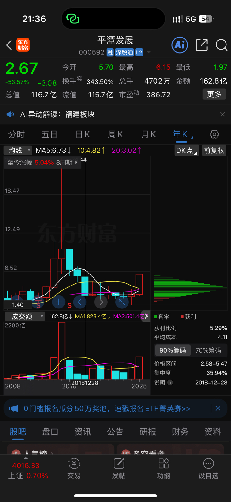 $平潭发展(SZ000592)$ 开始过前高了 前面还有人套着呢么
