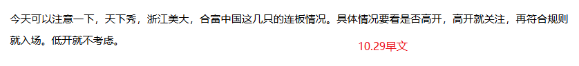 合富中国(603122):昨天是二连板,突破了震荡区间,但是二板是缩量,今天要是继续高开,就还是有望再次板的预期,盘中还可以继续考虑,要是是低开的情况,预期就不能太大。