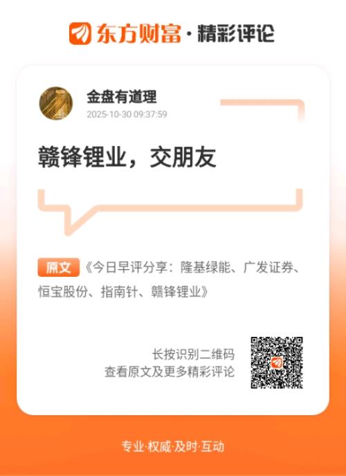 $赣锋锂业(SZ002460)$赣锋锂业,锂电池板块经过高位横盘震荡,昨天有明显再走强迹象,赣锋锂业是传统锂矿股,并涉及固态电池、光伏概念。技术上赣锋锂业一直是领涨的状态,9月份涨幅较大,之后出现调整,回踩至20日线时止跌,并出现强势反弹,这反弹的力度是龙头级别,金哥选它是因为昨天大涨之前出现了3天的小星横盘,这种走势后连阳的概率很大。