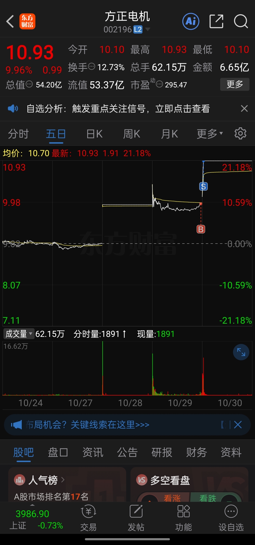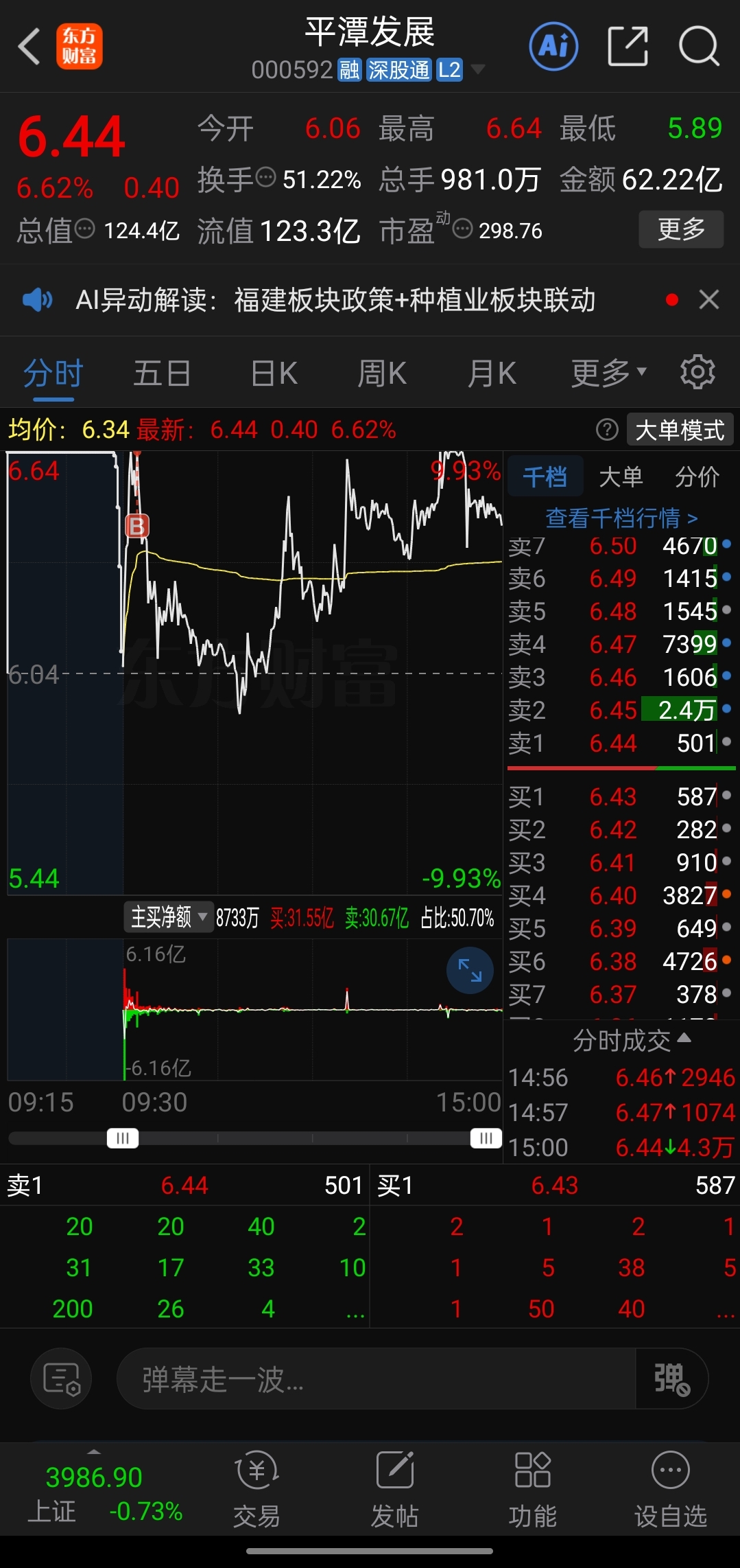 昨日尾盘入方正早盘挂涨停出,打板入平潭高位还手还能控成这样说明平潭有承接而且平潭