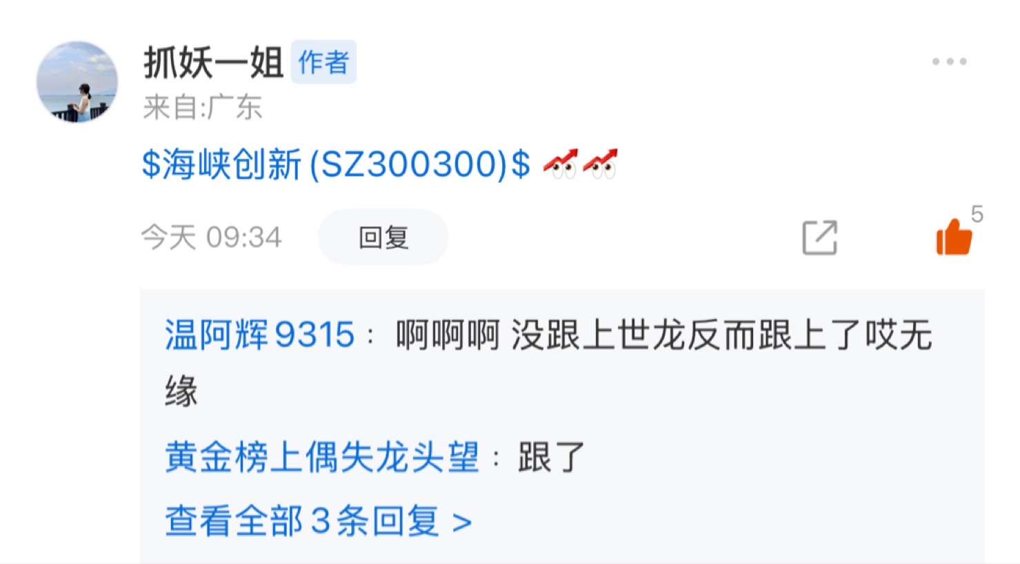 $平潭发展(SZ000592)$ 昨天复盘提到过今日必须要来个强修复,该股的上升趋势才能维持前进,$粤 传 媒(SZ002181)$ 传媒板块今日资金回流明显,该股作为该板块带头大哥最应该率先领涨,只做大哥不带小弟,$海峡创新(SZ300300)$ 经过两天调整今日资金不断回流,开盘就表现不凡,再次重新参与入场