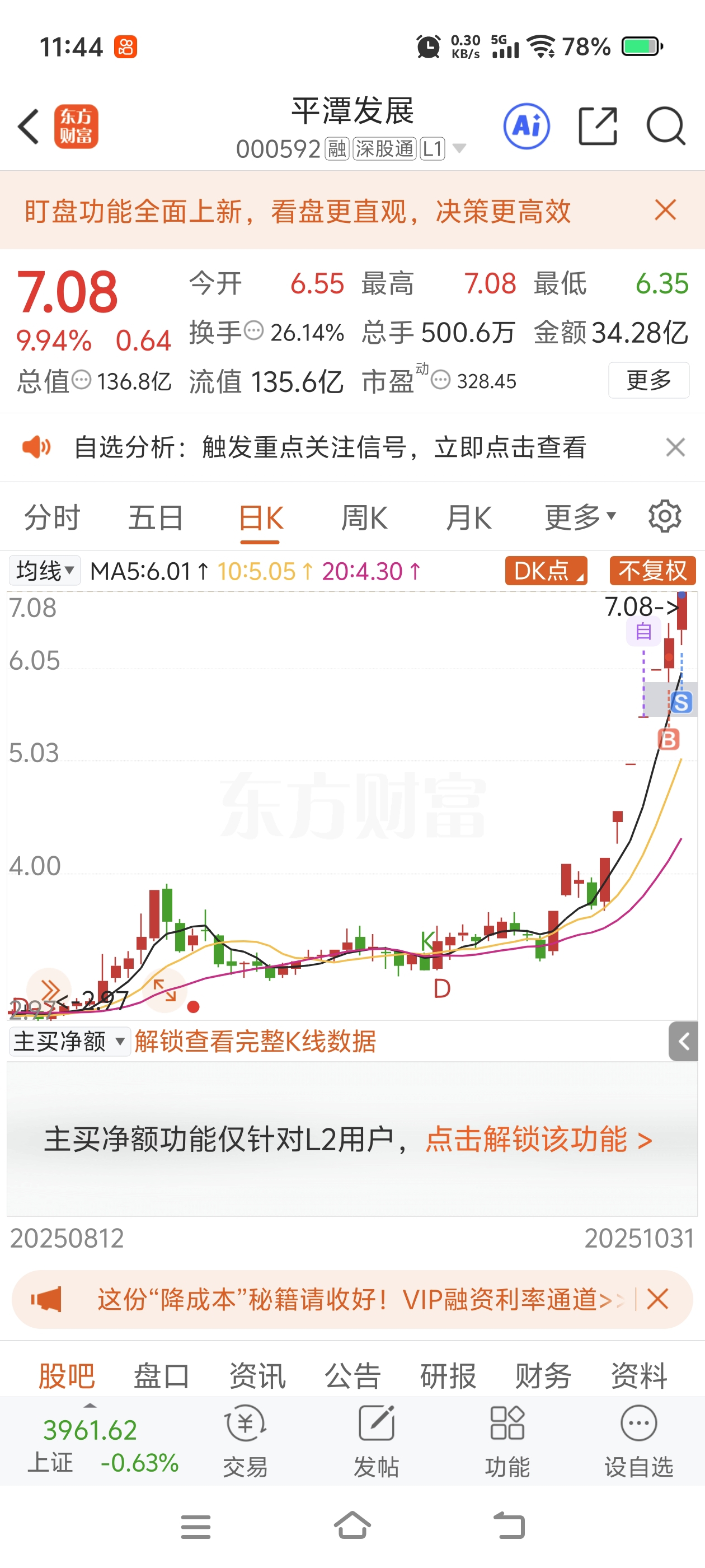 $平潭发展(SZ000592)$  怪不得说是韭菜呢涨一点就卖,亏了的死拿