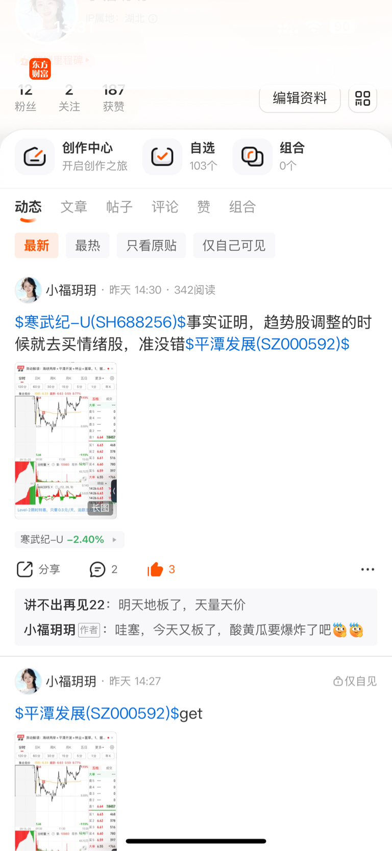 $平潭发展(SZ000592)$ $寒武纪-U(SH688256)$ 以后不在股吧分享自己的见解和买卖点了,因为发现绝大部分都看不懂且嫉妒心超强,古人云夏虫不可语冰,井蛙不可语海,是非常有道理的。祝各位发大财。
