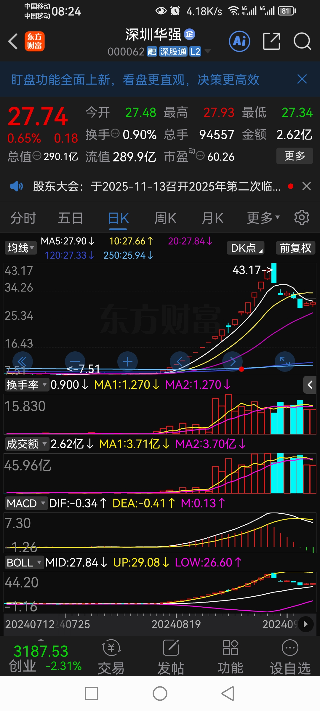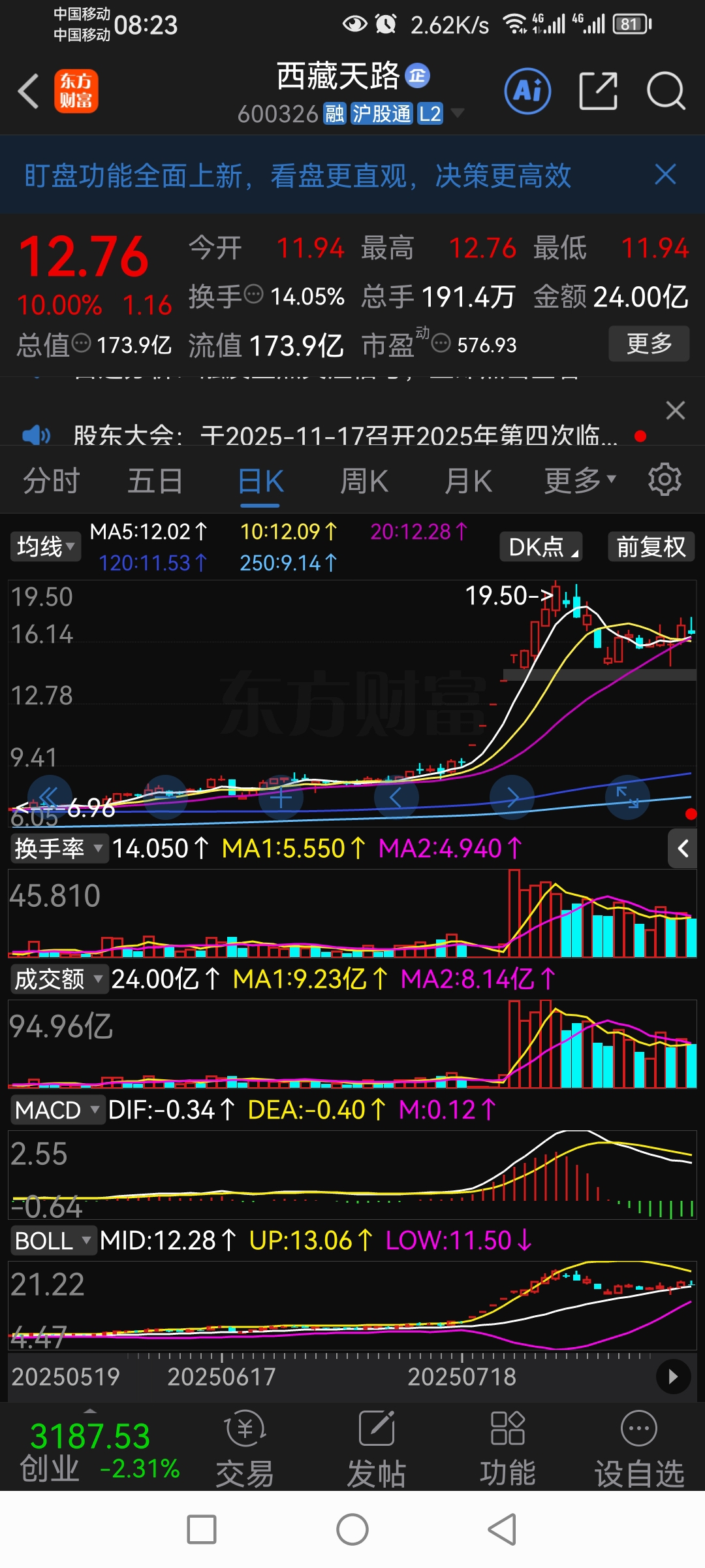 $平潭发展(SZ000592)$ 主力资金选择了平潭作为板块的龙头大哥(10CM。20CM是海峡创新)一字板上来开板后放巨量换手的龙头后市有两种发展模式:一种是西藏天路的快进快出3.5天结束战斗,一种是深圳华强的高举高打游资分段接力打创超级妖股。无论是从资金的介入深度还是从板块的炒作高度来分析,平潭发展更倾向于第二种模式