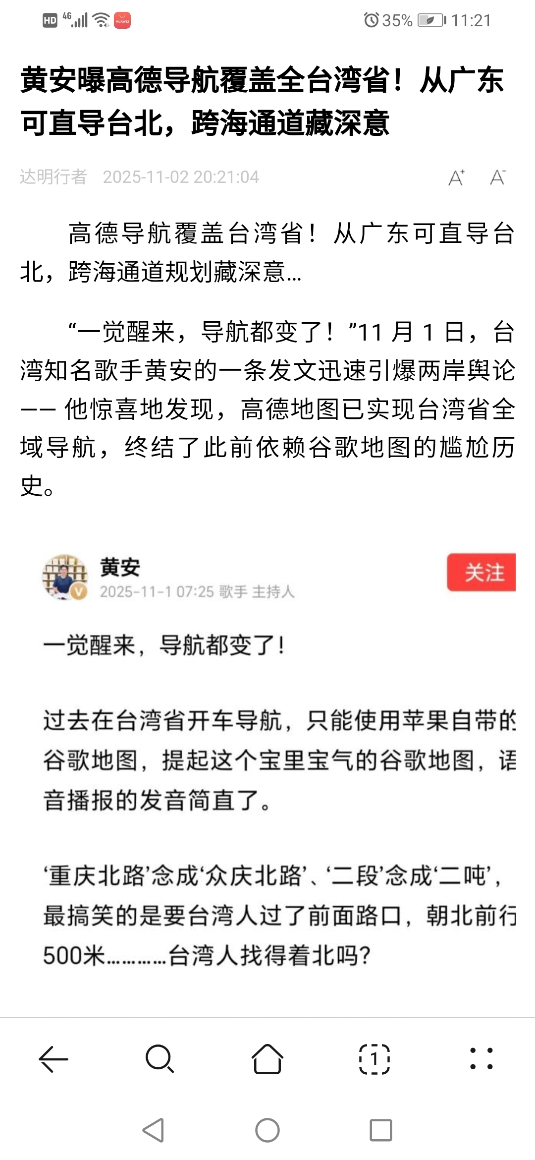 终于等到这一天。黄安曝高德导航覆盖全台湾省!