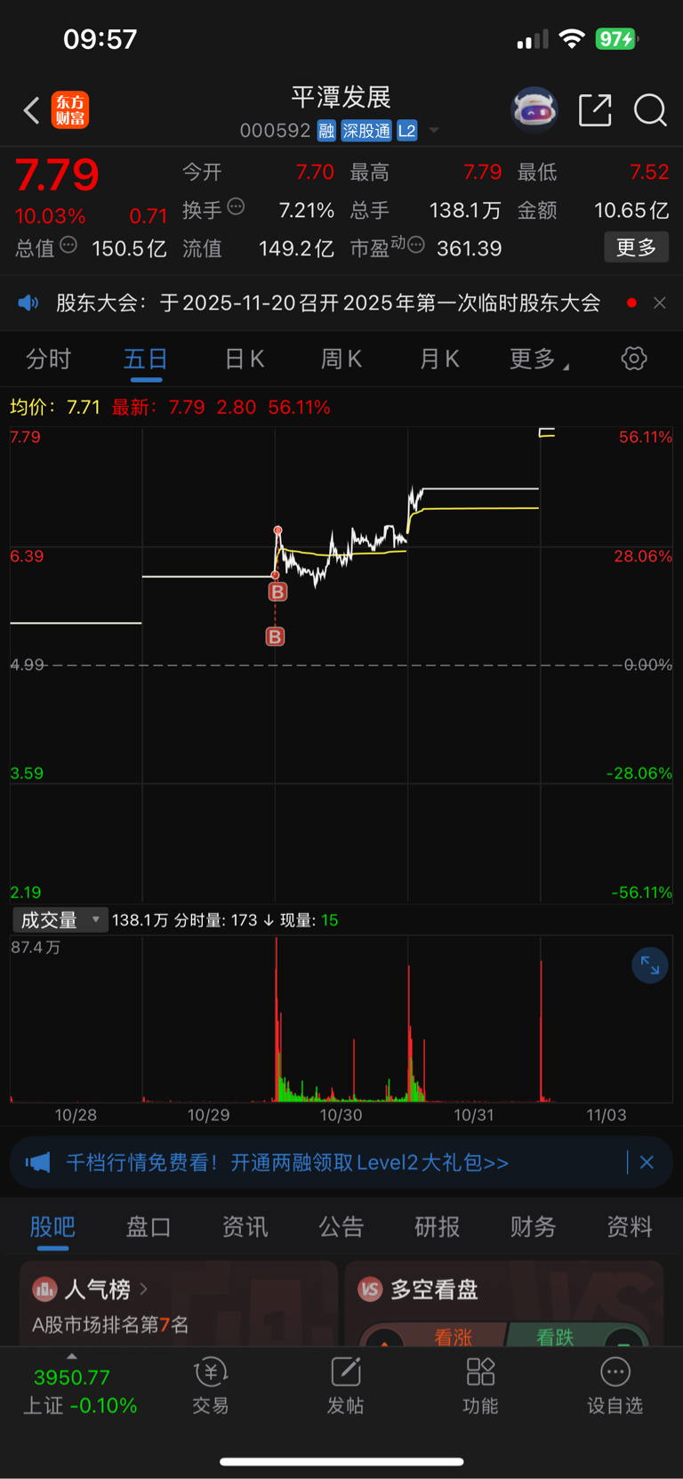 哥,经常见你涨停后下班,平潭发展哪天涨停你哪天下班,到底你哪天上班的?我翻了你半年的,也没见你啥时候上车的?如果吃肉不叫咱们,光出来口嗨,那就有点心术不正了!对不,都是股友,我说话比较直。