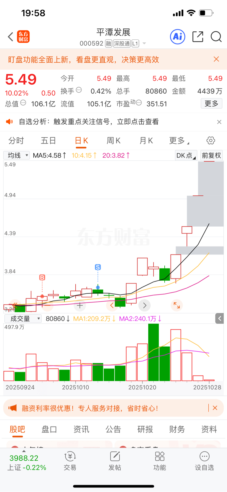 $平潭发展(SZ000592)$ 越涨哭的越大声,应了那句话,命里有时终须有啊!搞个13板出来,看着也刺激!