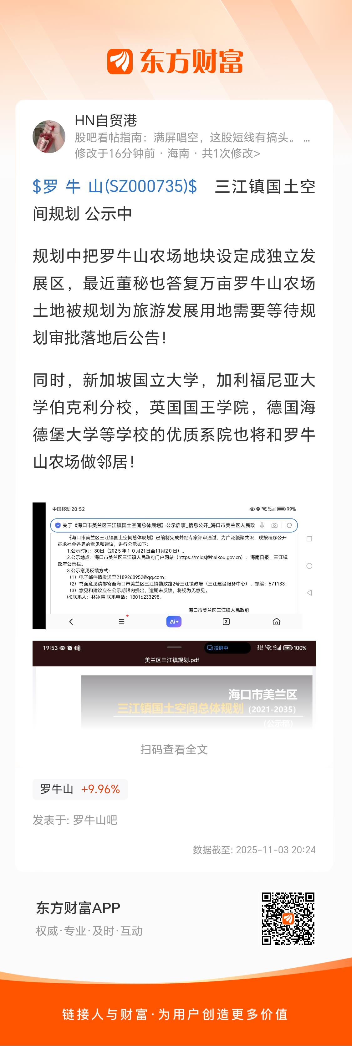 $罗 牛 山(SZ000735)$ 三江镇国土空间规划 公示中