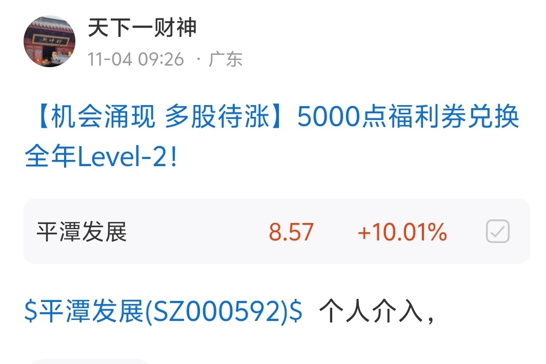 $平潭发展(SZ000592)$ 早上提醒的,目前又是吃大肉了