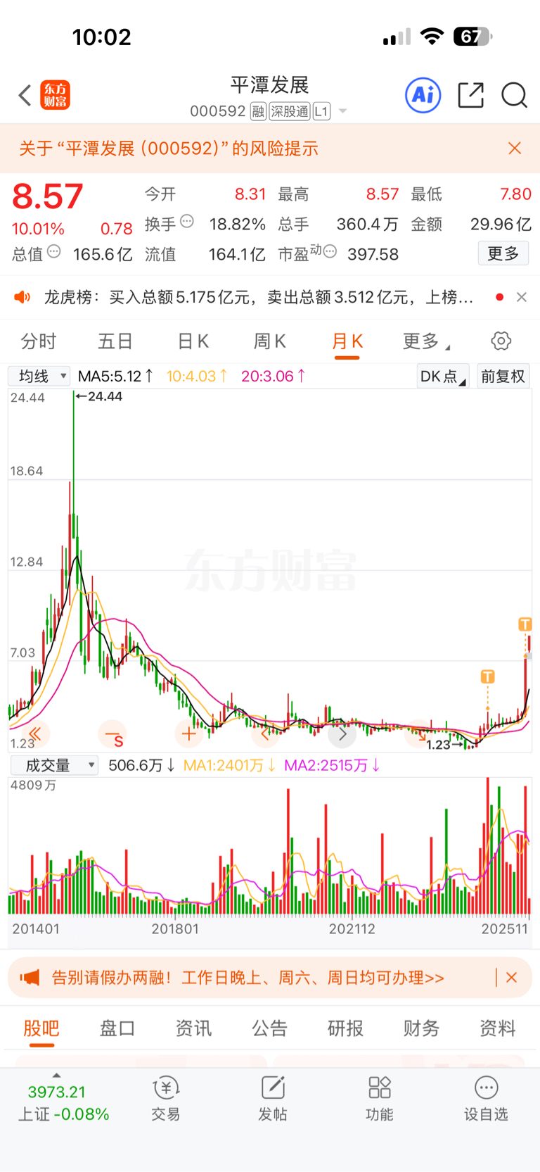 $平潭发展(SZ000592)$ 抓住一只牛股,比啥技术分析都强,都猛。真真就躺着无脑赚钱,爆量那天做了个T,我就没动过