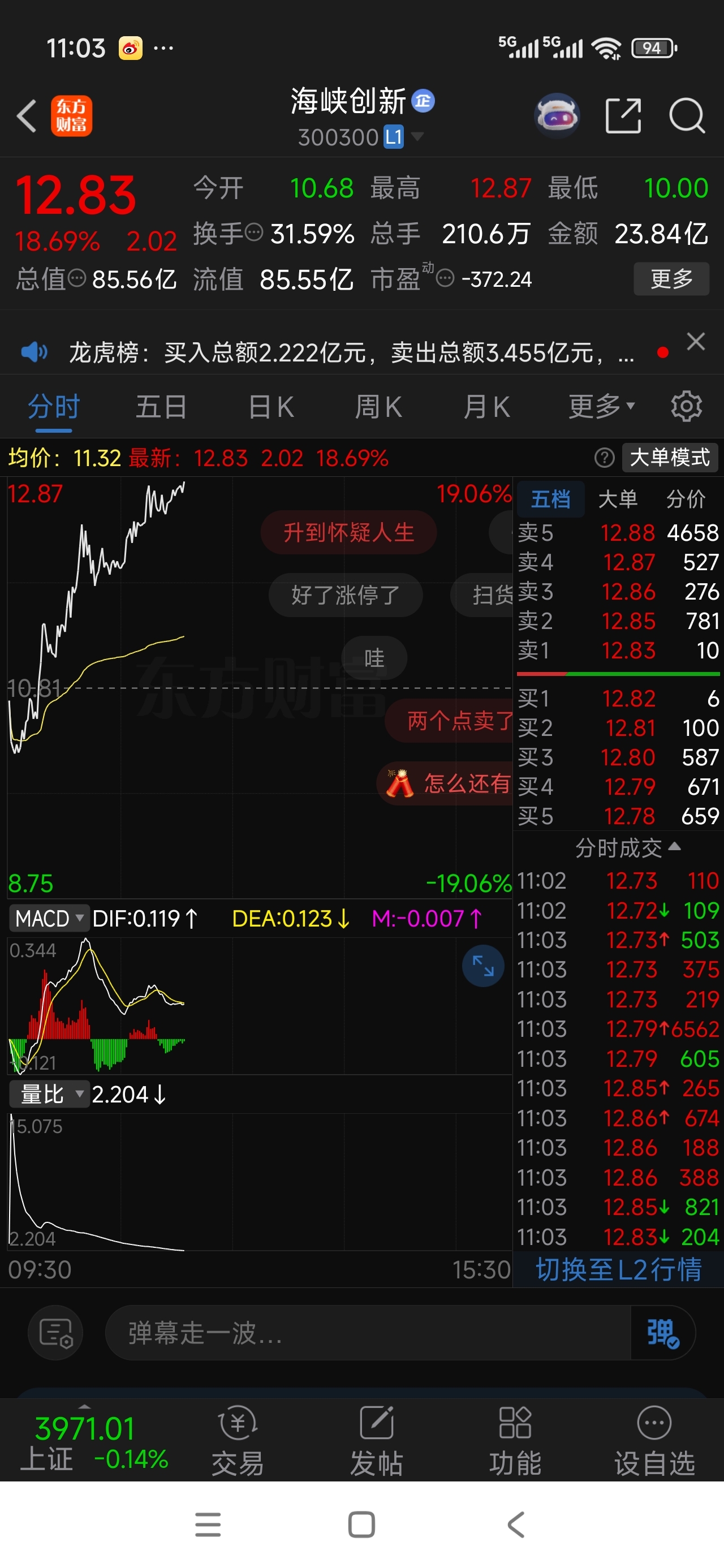 海峡20厘米涨停,那这只岂不是还有20个点以上涨幅?