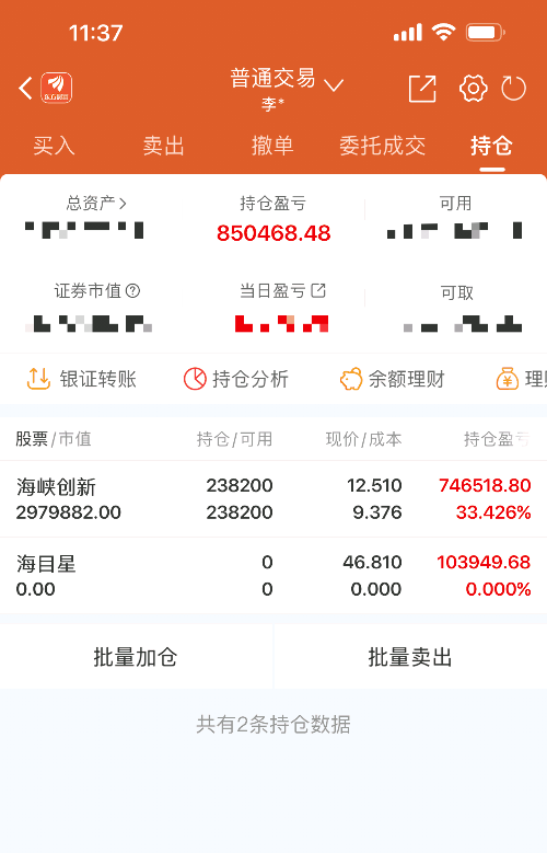 今天一个词,“寡淡”!指数风轻云淡,个体又是血雨腥风。还是经典的两张皮行情。……盘面上,银行、险资、电网设备等少数板块活跃,贵金属、电机、能源金属、医药等集体挨打。题材方面,福建板块、智能电网等少数板块异动。场子内红瘦绿肥,红盘家数1600家,绿盘家数3400家。实际涨停家数37家,实际跌停家数1家。银(行)老大又在发挥自己的本职工作,负责指数的稳。今天和昨天上午是同样的套路,拉高股息砸题材股,昨天砸的是半导体,今天砸机器人,有色和医药。现在场子最大问题是资金的积极性不高!量能方面,今天上午与昨天相比缩量10%,预期成交量在1.9万亿。量在萎缩,说明有资金在休息。整体看,当下的核心矛盾:指数在表演假摔,跌一跌又回来了;但无数个体正在吃哑巴亏,跌下去就再也回不来了!(投资有风险,以上内容不作为投资建议,请勿炒作业)$海峡创新(SZ300300)$
