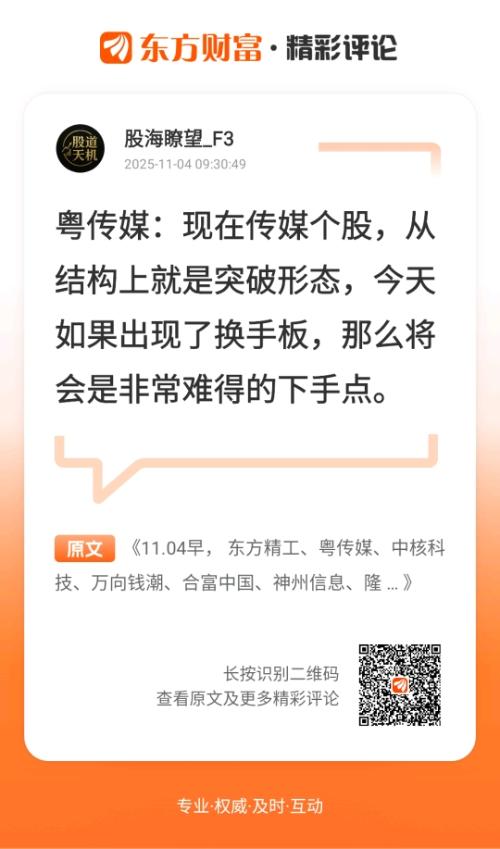 粤传媒:目前个股已经连续的收出了两个涨停板,特别是昨天出现了一字板涨停的情况,导致了无法下手,只能保持关注的因金地从公司基本面来讲,主要是当前属于广东区域里面的文化传媒以及转告服务类型的公司啊。当前全国的15运动会正式召开,而公司作为当前的运营合作商来讲,也会充分的受益这一次赛事带来的业绩的提升,更多的其实还是一个运动会题材的炒作。而从目前的整个结构形态上来讲,偏资金驱动型从过往的每一轮炒作也是如此,而现在刚好又叠加了当前AI加应用的相关炒作。那么当前的AI加传媒概念持续出现火爆的情况之下,有双旗台的驱动,所以今天进入第三个涨停板的位置,如果能够成功的出现换手板,那么则非常的值得关注。