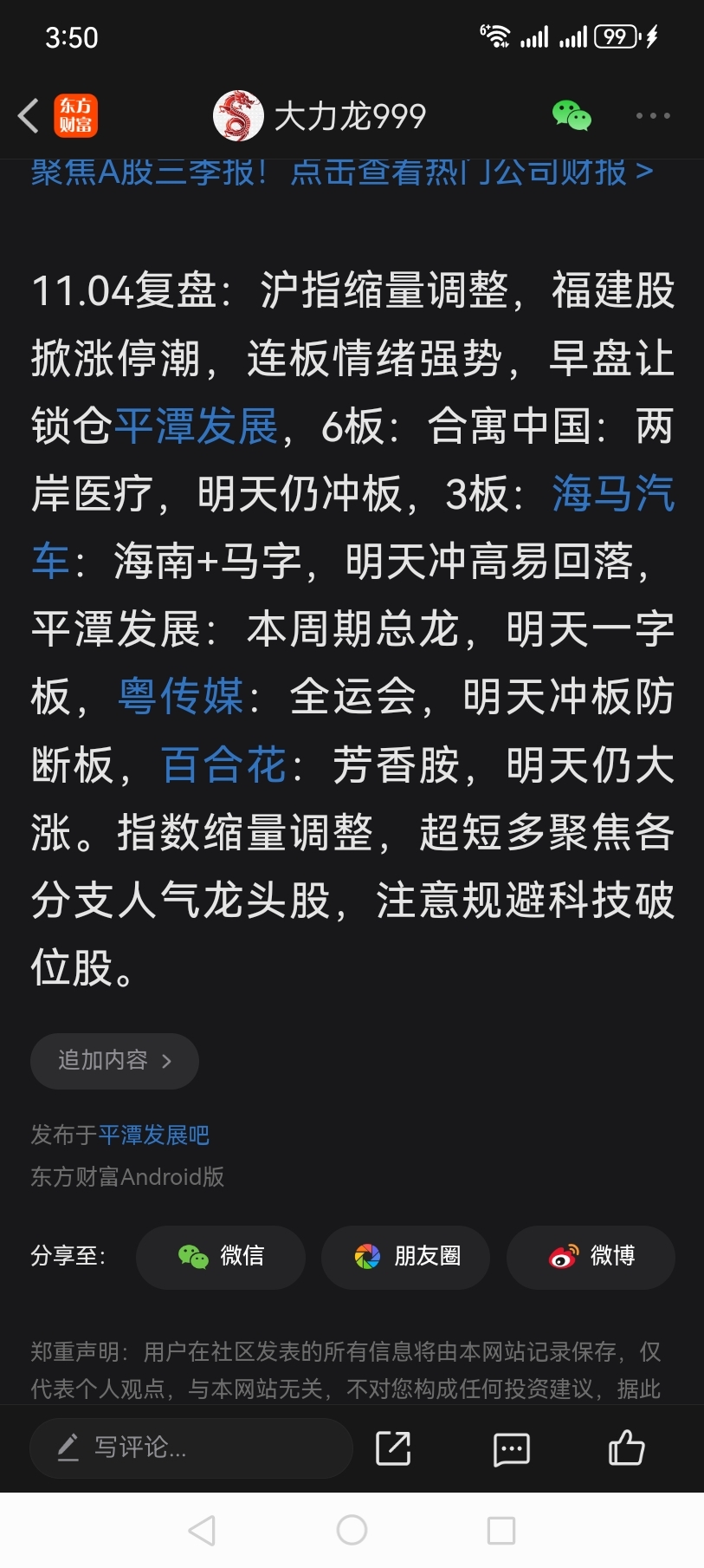 温馨提示: 1.根据《证券法》规定,禁止编造、传播虚假信息或者误导性信息,扰乱证券市场;2.用户在本社区发表的所有资料、言论等仅代表个人观点,与本网站立场无关,不对您构成任何投资建议。用户应基于自己的独立判断,自行决定证券投资并承担相应风险。《东方财富社区管理规定》