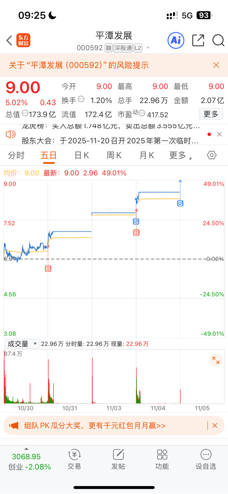 $平潭发展(SZ000592)$ 昨天抖音推太多了,而且高位长下影线太长,我不喜欢,走了