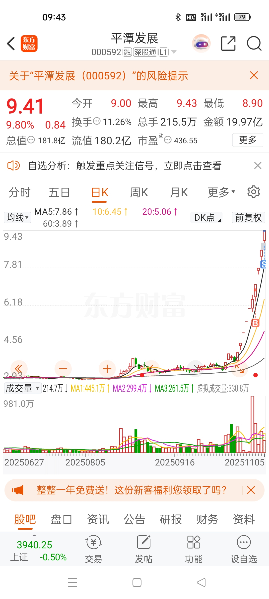 $平潭发展(SZ000592)$ 跑了,吃了33个点,今天多半要砸