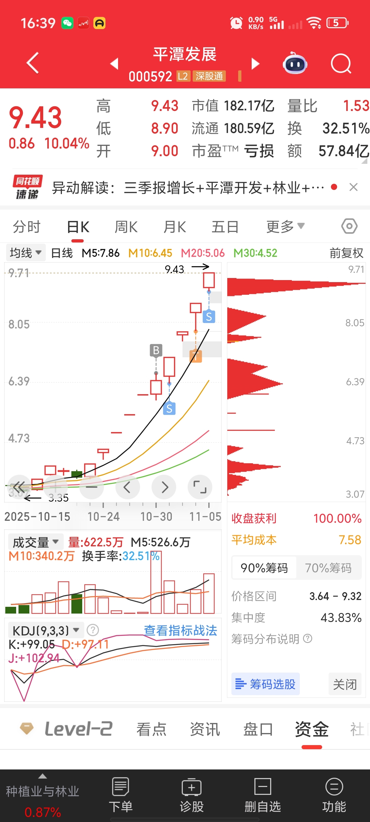 $平潭发展(SZ000592)$ 游资只要不乱动兄弟伙也能撑起一片天,可以的!介入的比较晚不太好格局,留了一成底仓赔你们格局到底。