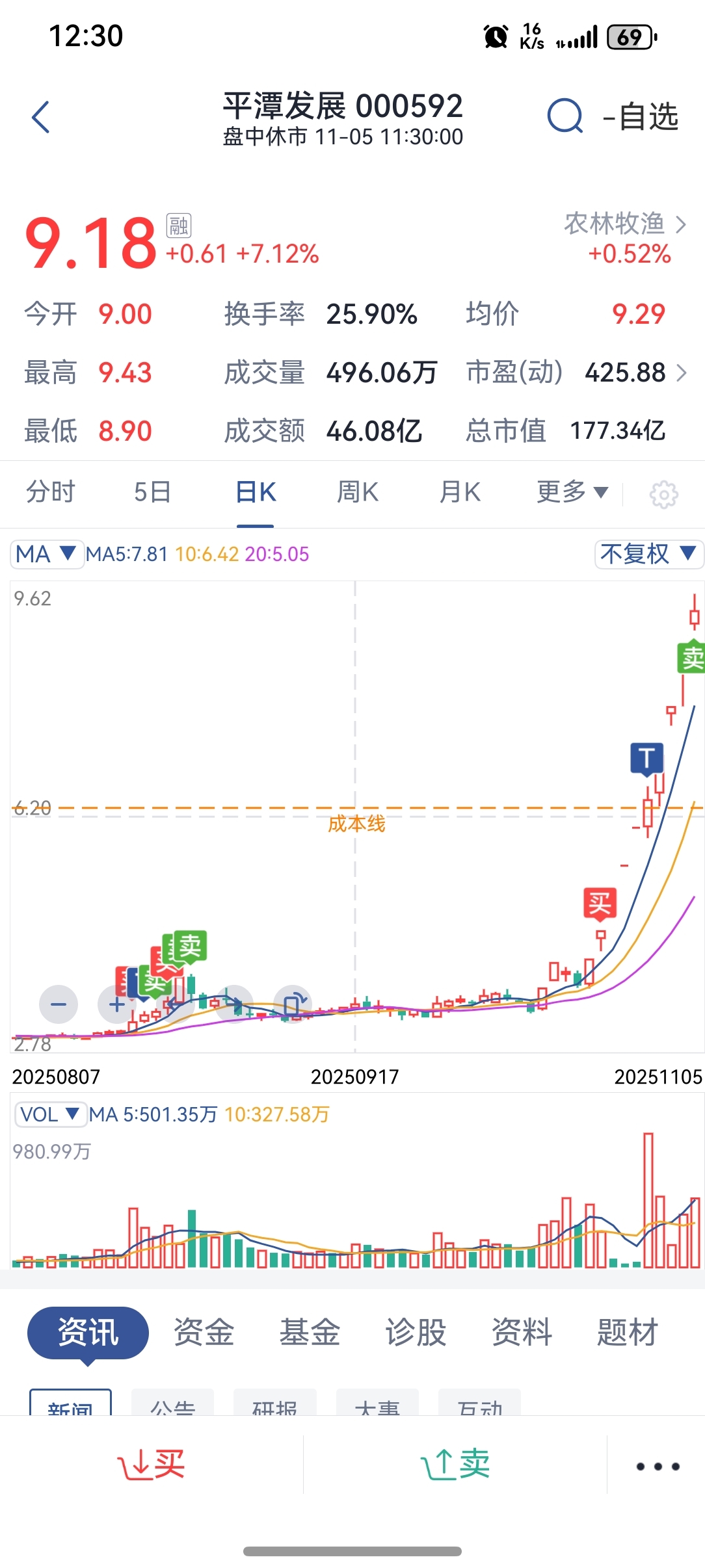 $平潭发展(SZ000592)$ 今天有点傻,明明福建整个题材都没负反馈,平潭作为总龙,肯定最后一个倒下,就算卖也得到尾盘不封板再卖的,可惜了,不过赚钱撤总是对的。