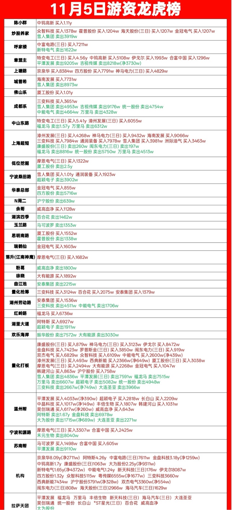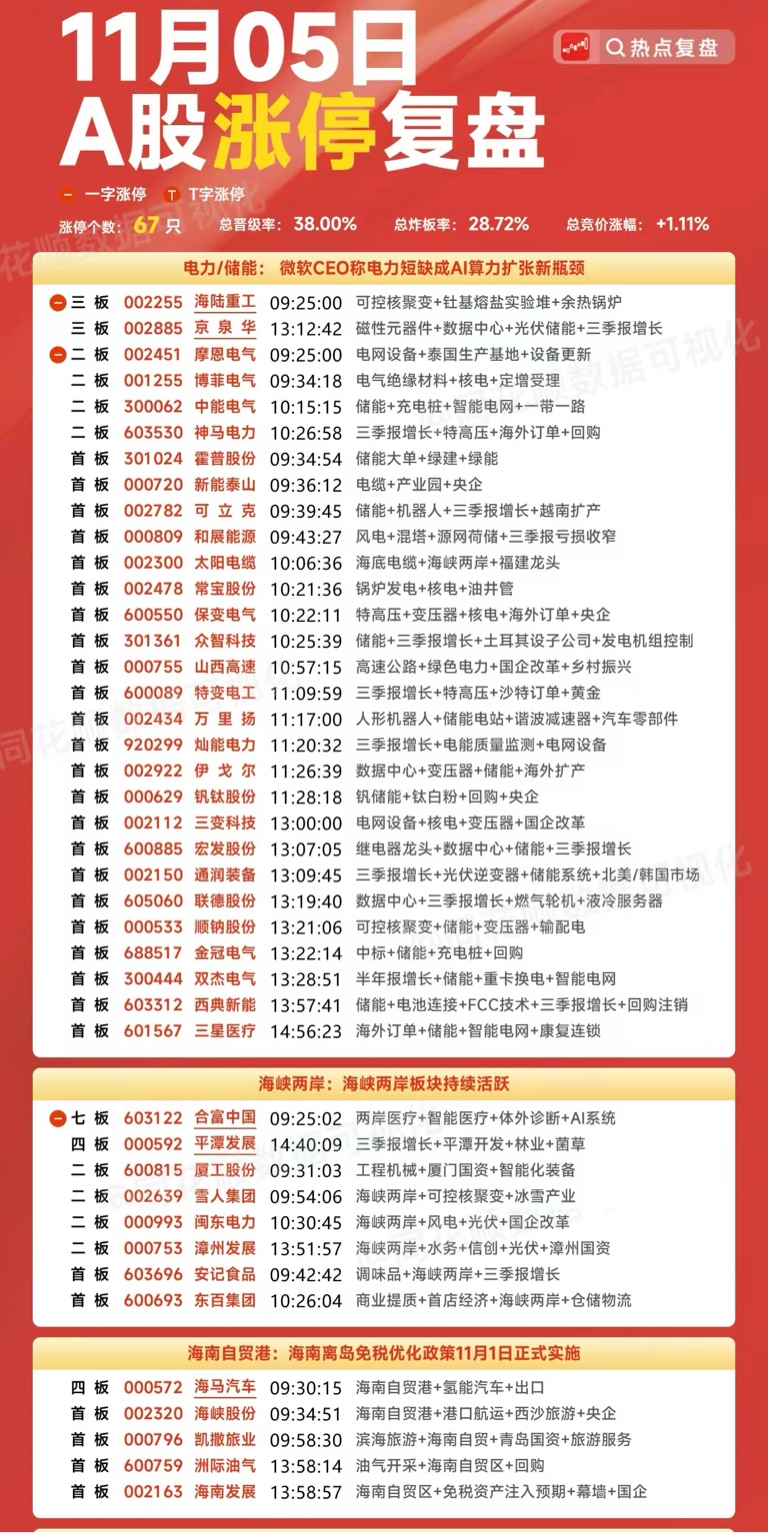 11月5日各大板块涨停个股&游资龙虎榜复盘今日持仓平潭&特变