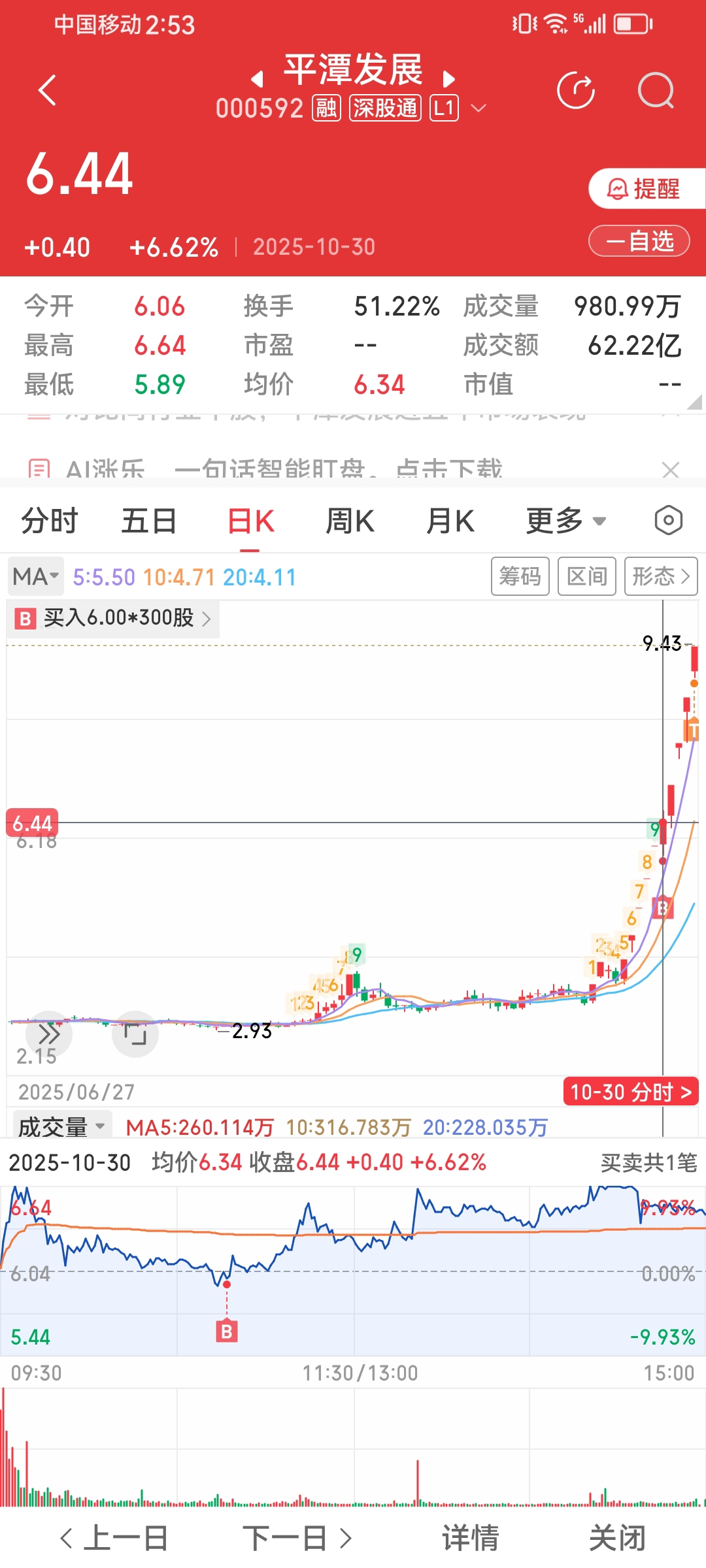 $平潭发展(SZ000592)$ 今天收益百分之十三 总收益百分之六十二 你们担心什么 这种股票龙首阴 大概率反包的 着什么急