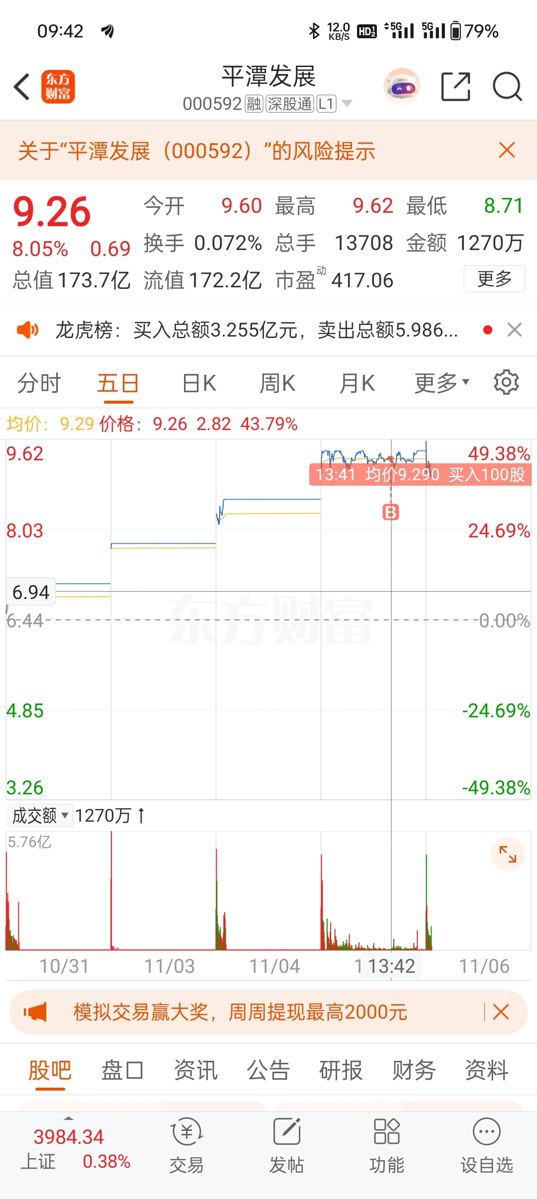$平潭发展(SZ000592)$ 对不起了家人们。一百股买崩了
