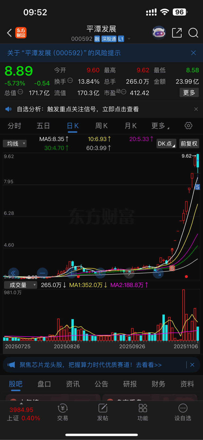 $平潭发展(SZ000592)$ 确认弱势,9.26 出清。
