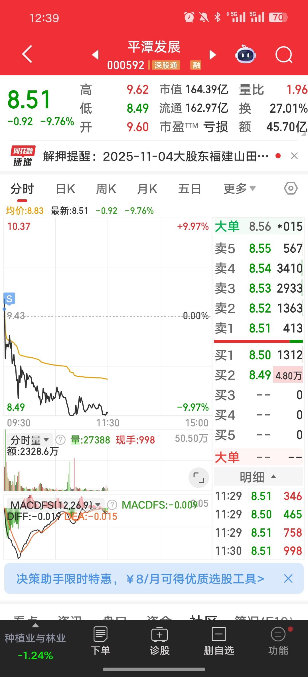 $平潭发展(SZ000592)$ 再见了朋友们,获利280个