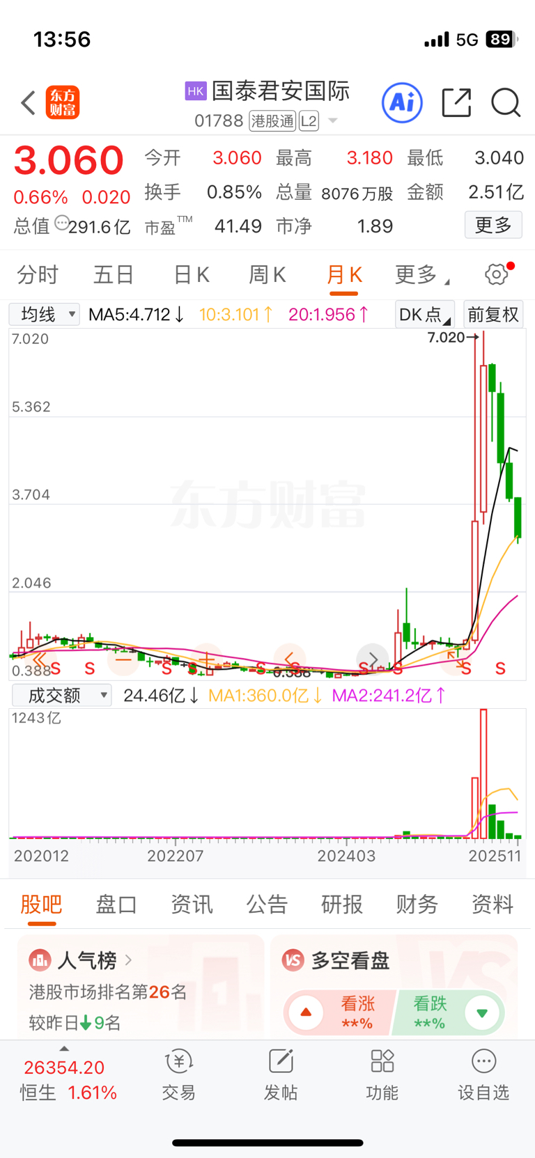 $平潭发展(SZ000592)$ A沙来了,千万别进了参考$国泰君安国际(HK|01788)$ $药捷安康-B(HK|02617)$