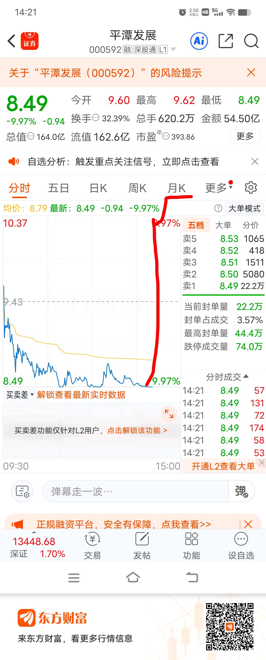 $平潭发展(SZ000592)$ 14:35分不↑告别股市