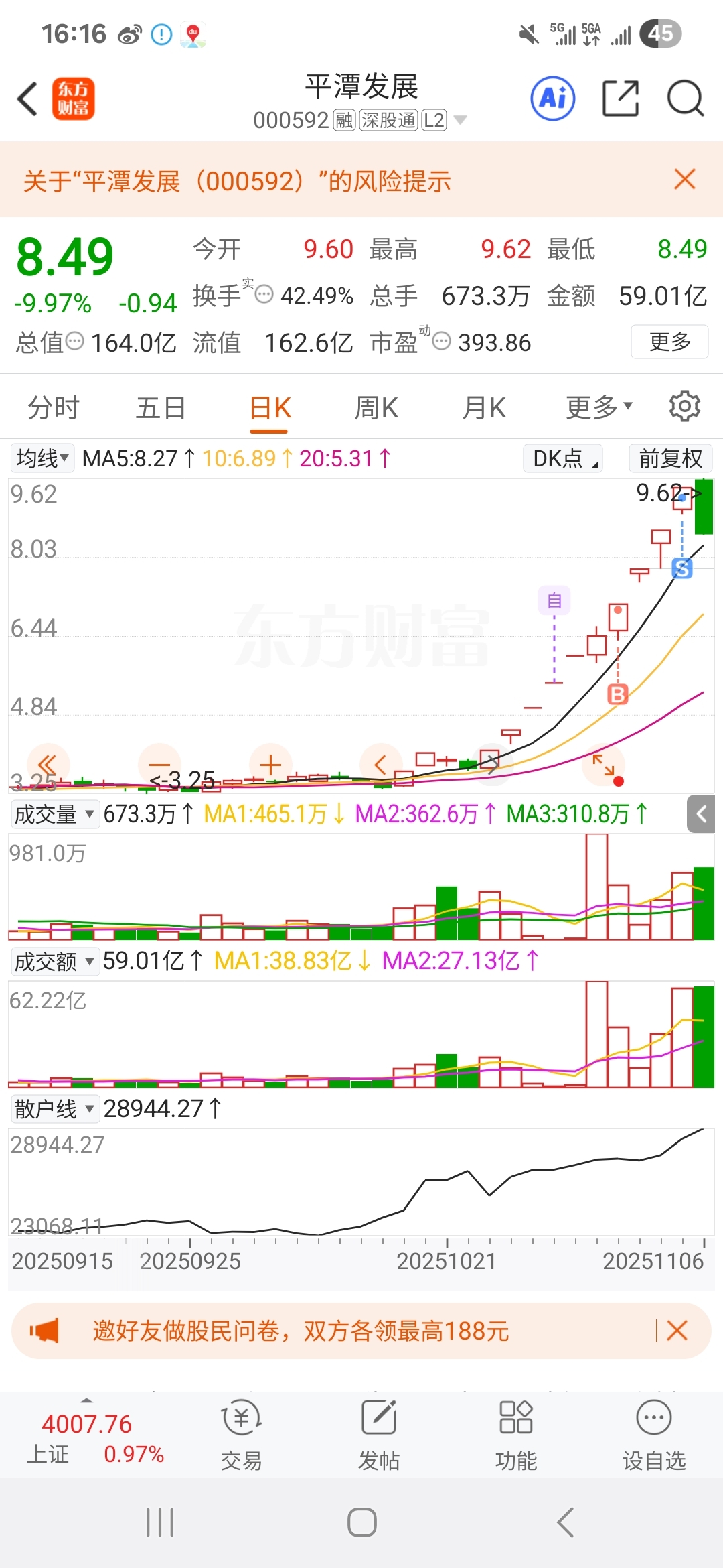 $平潭发展(SZ000592)$ 昨天卖出平潭,收益32个点,找新机会了